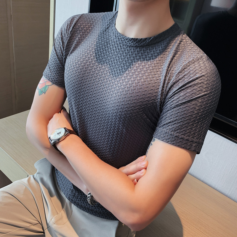 New Men's Ice Silk Short-sleeved T-shirt Round Neck Thin Section