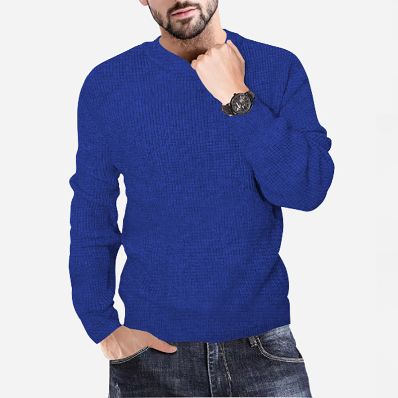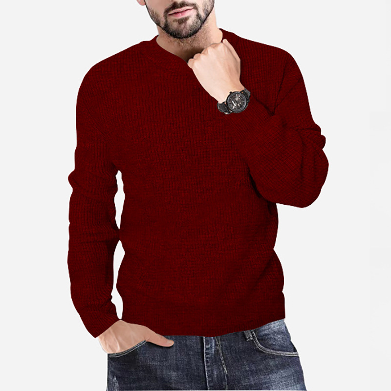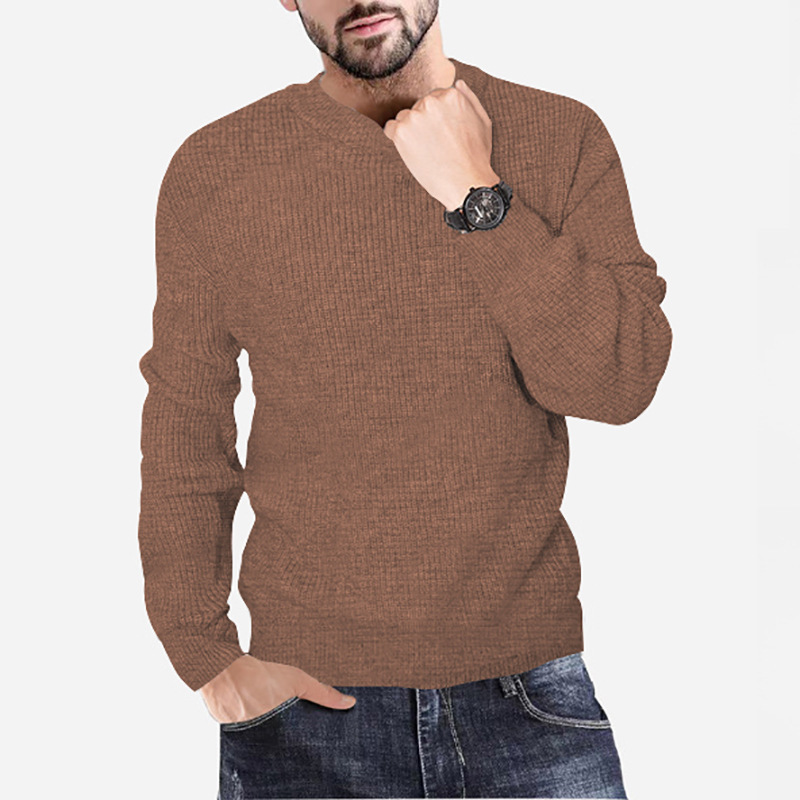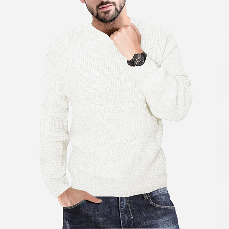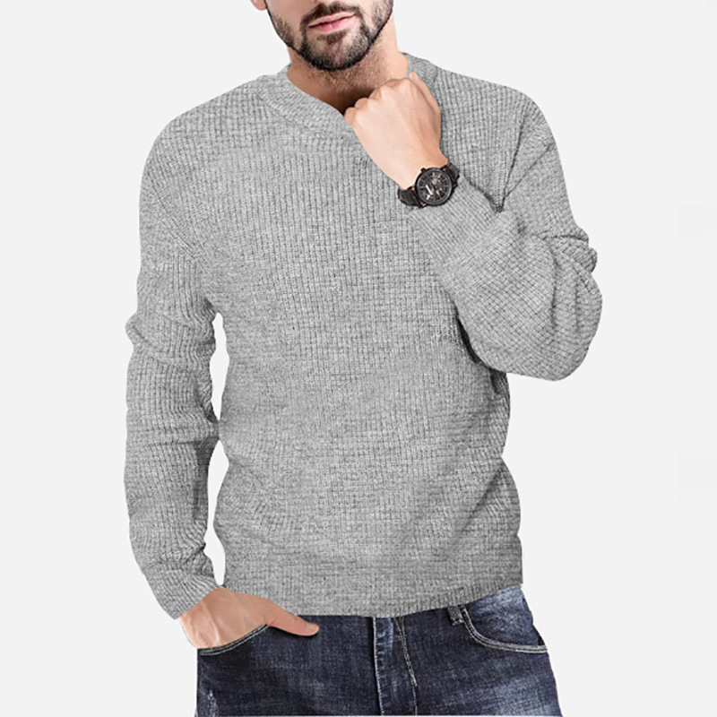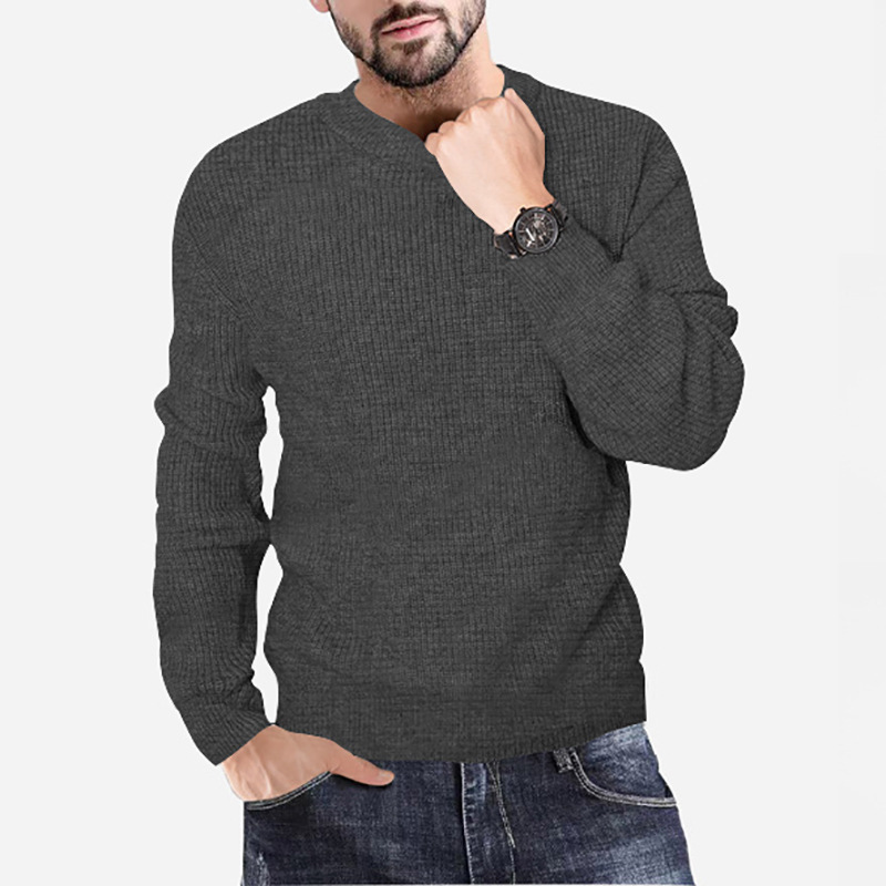 New Men's Knitting Round Neck Pullover Waffle Solid Casual