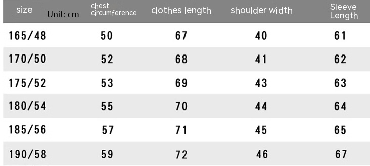 Dimensions: 165-50.00kg-70.00kg,170-80.00kg-90.00kg,175-70.00kg-100.00kg,180-80.00kg-kg,185-90.00kg-kg, 190