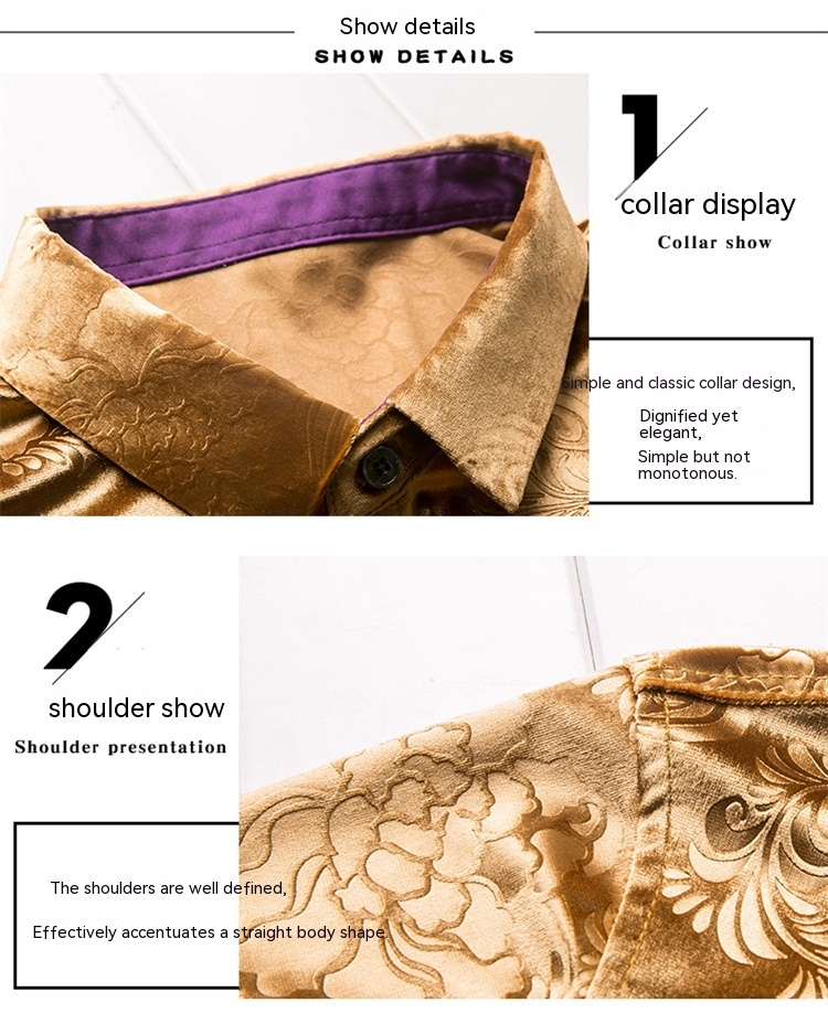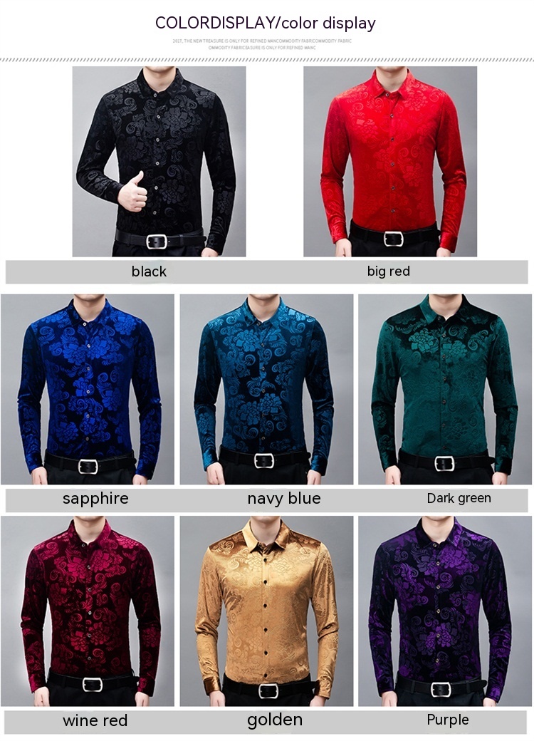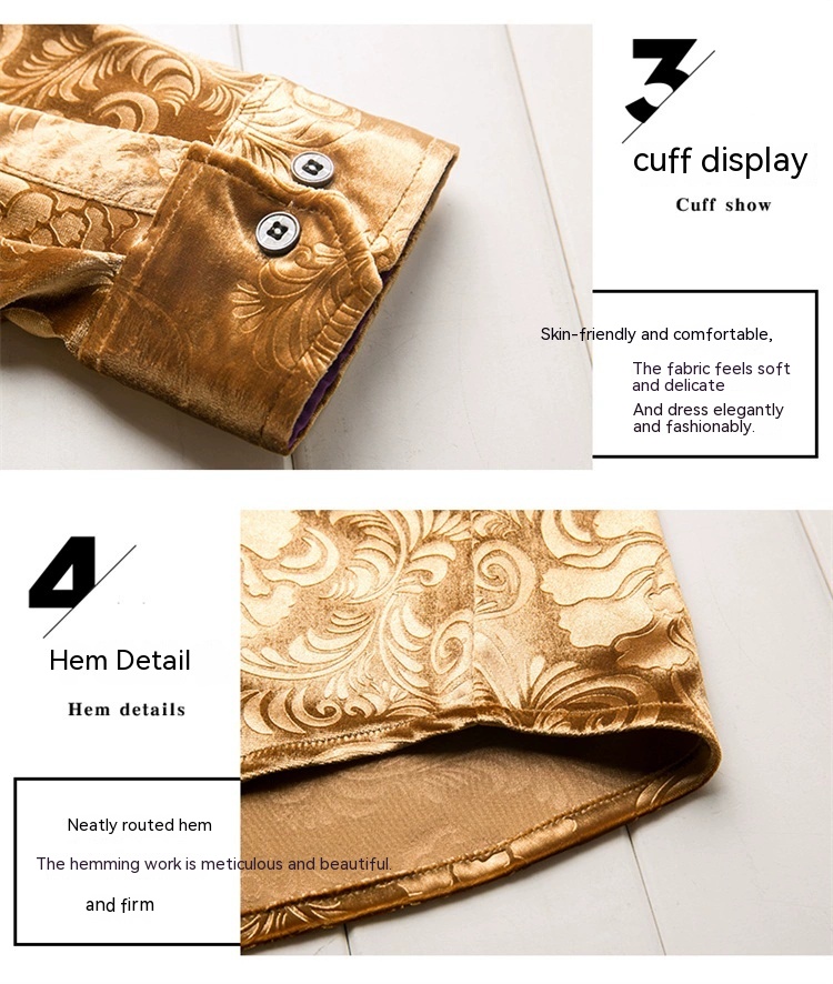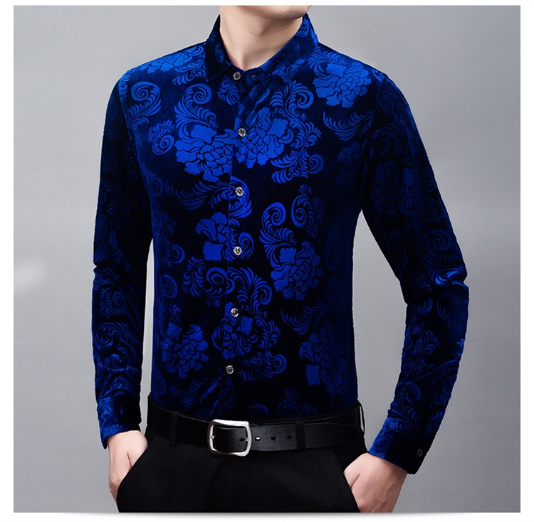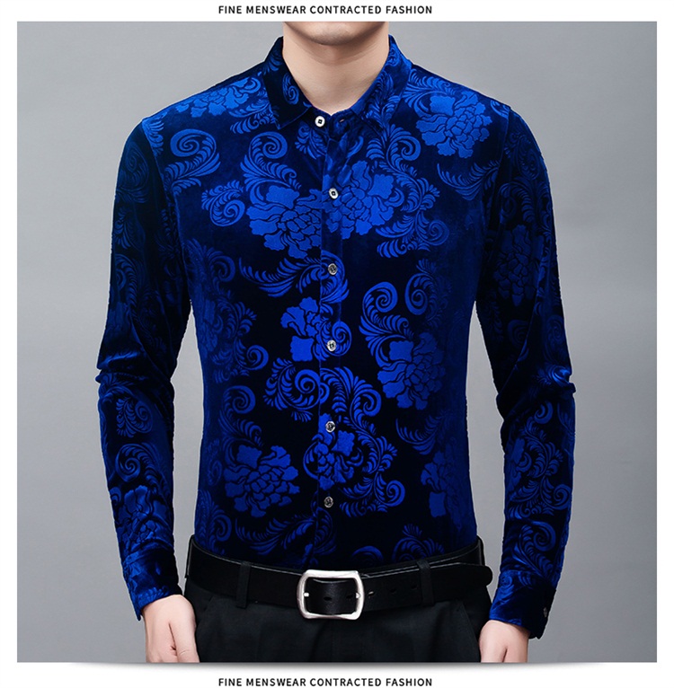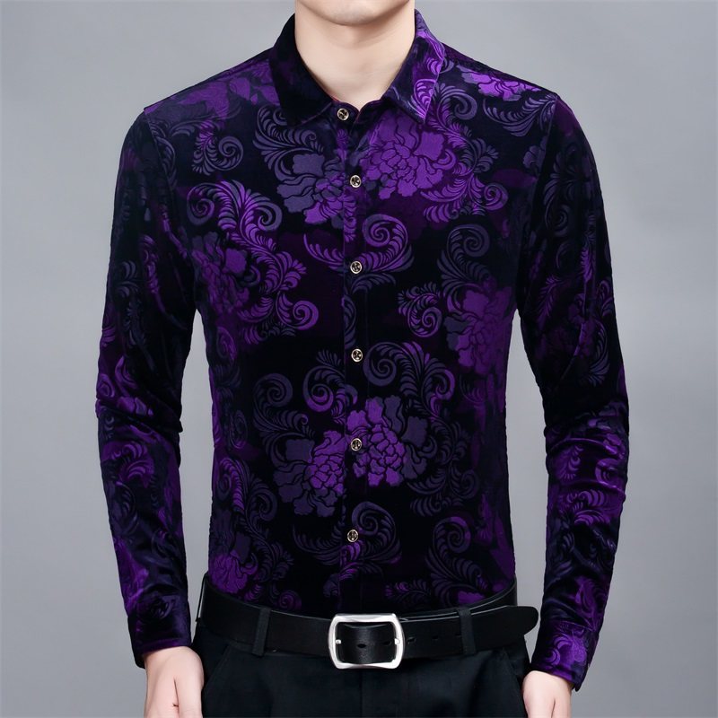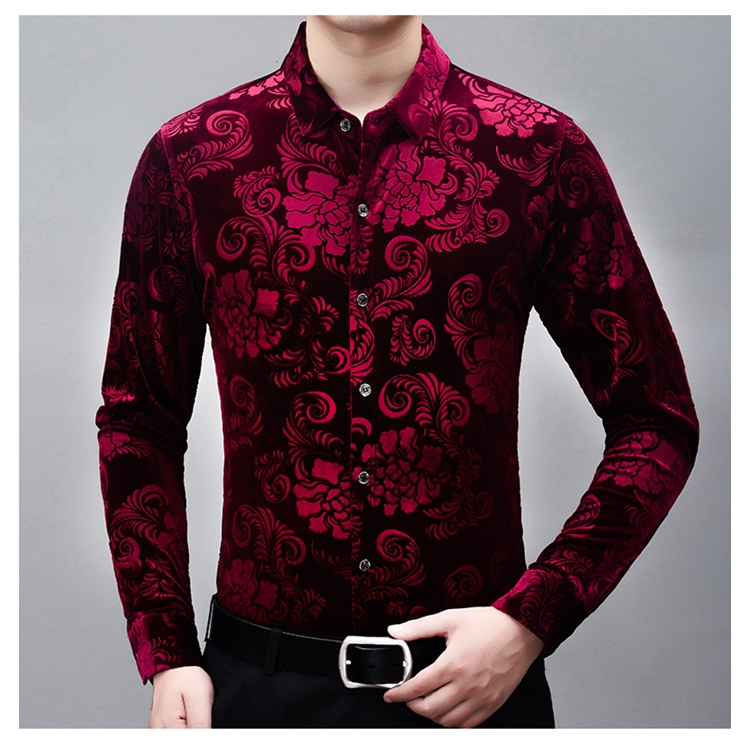 New Men's Long-sleeved Shirt Spring Men's Gold Velvet Dad Wear Loose Middle-aged Plus Size Flower Shirt Thin