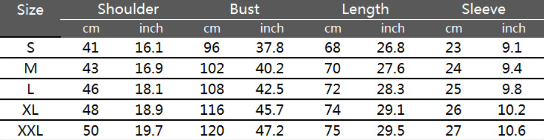 Size: S, M, L, XL, XXL