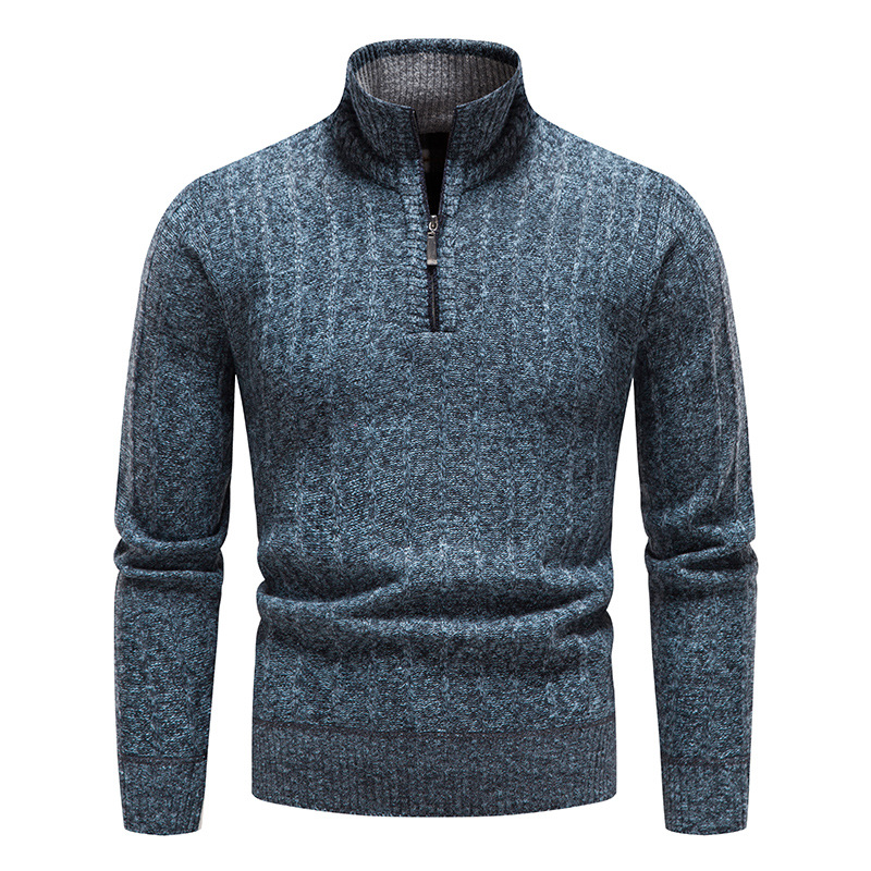 New Men's Stand Collar Pullover Sweater Striped Fleece