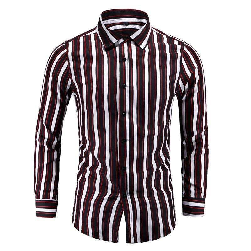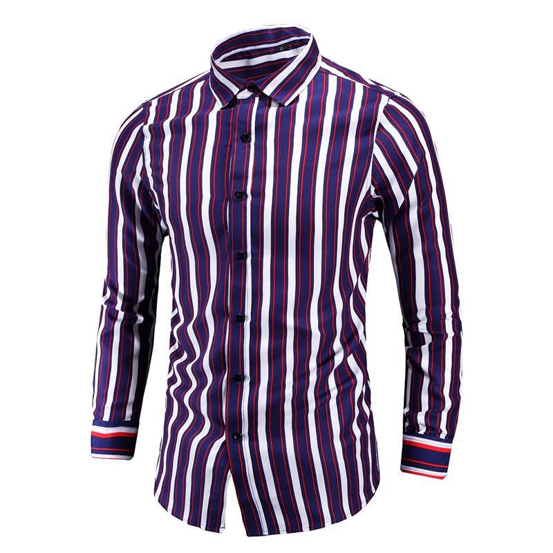 New Mens Striped Long-sleeve Shirt Korean-style For Young Men