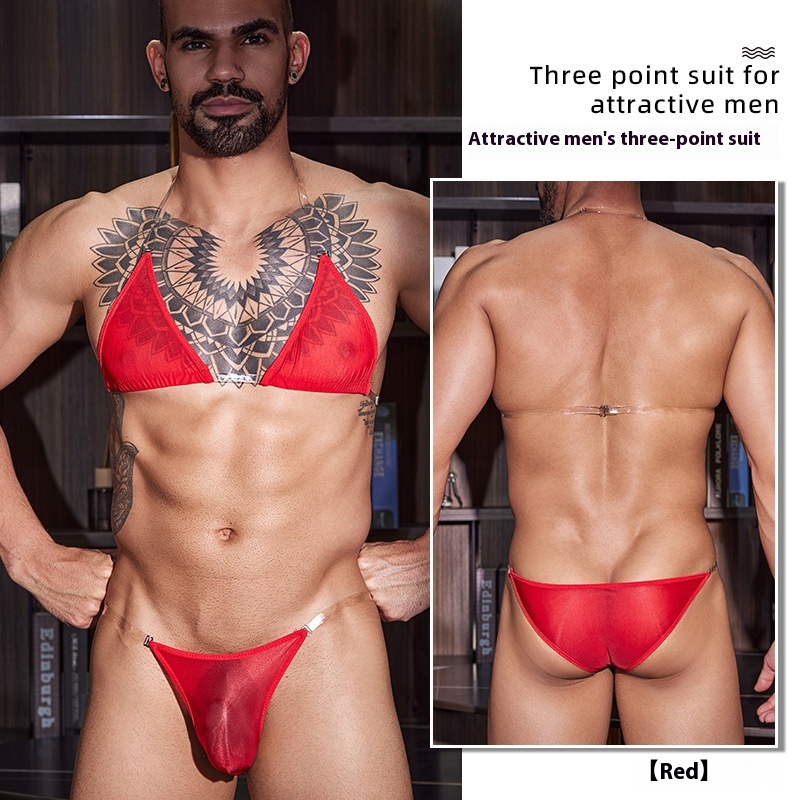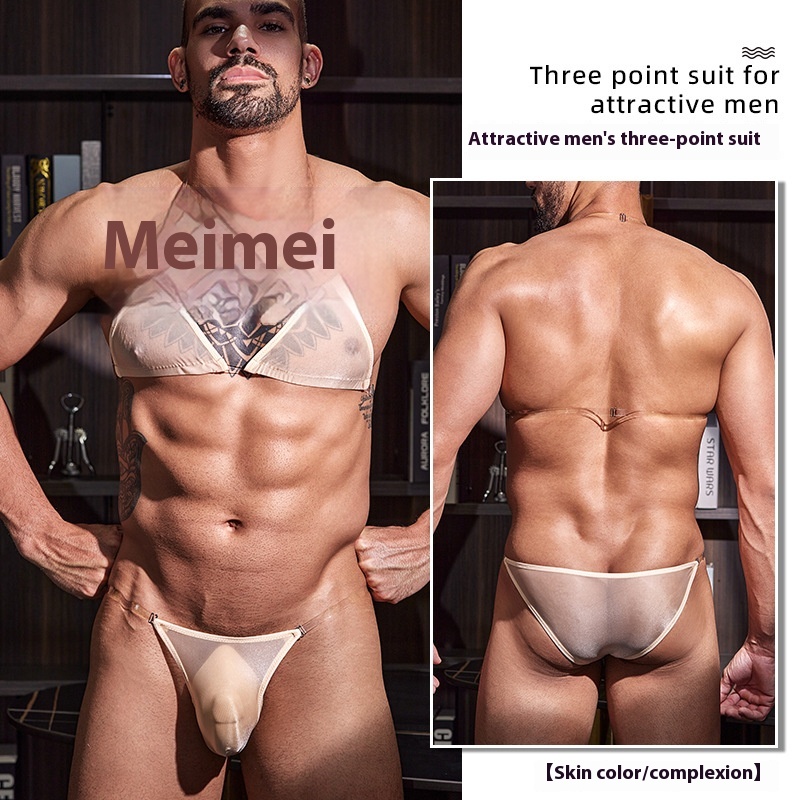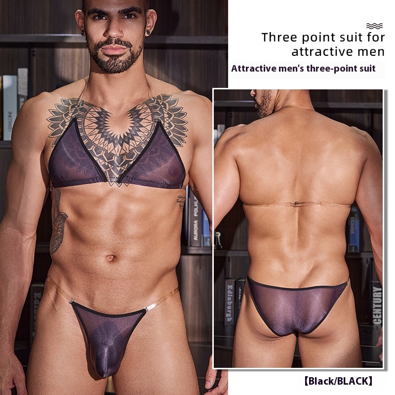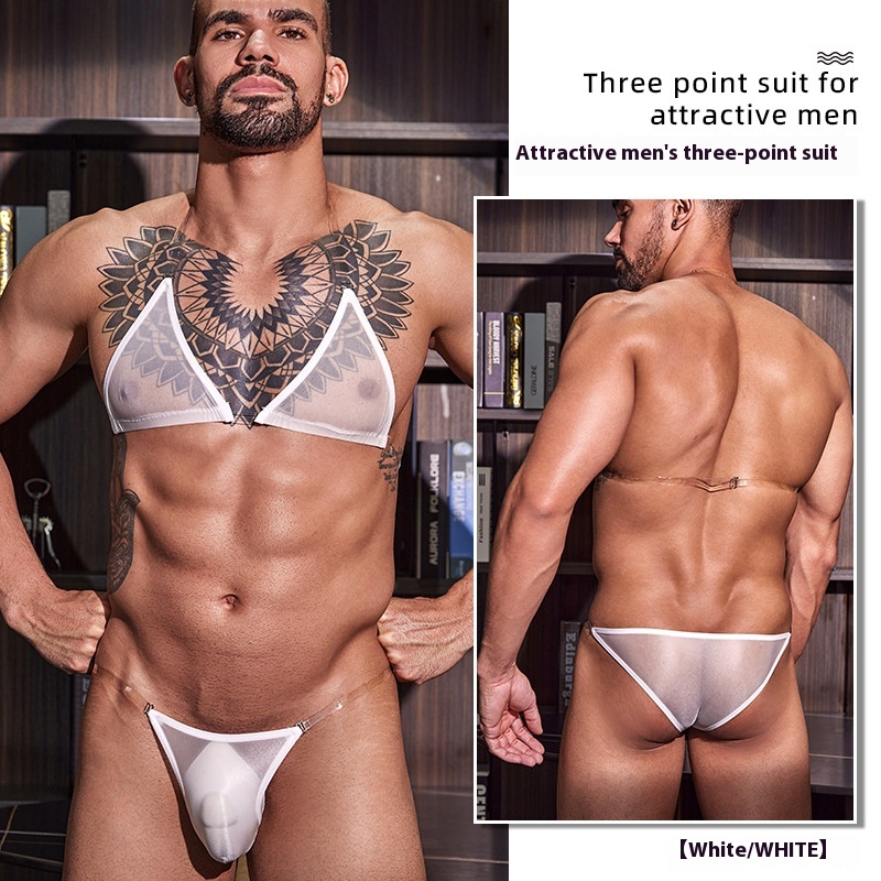 New Men's Thin Transparent Sexy Three-point Sexy Suit