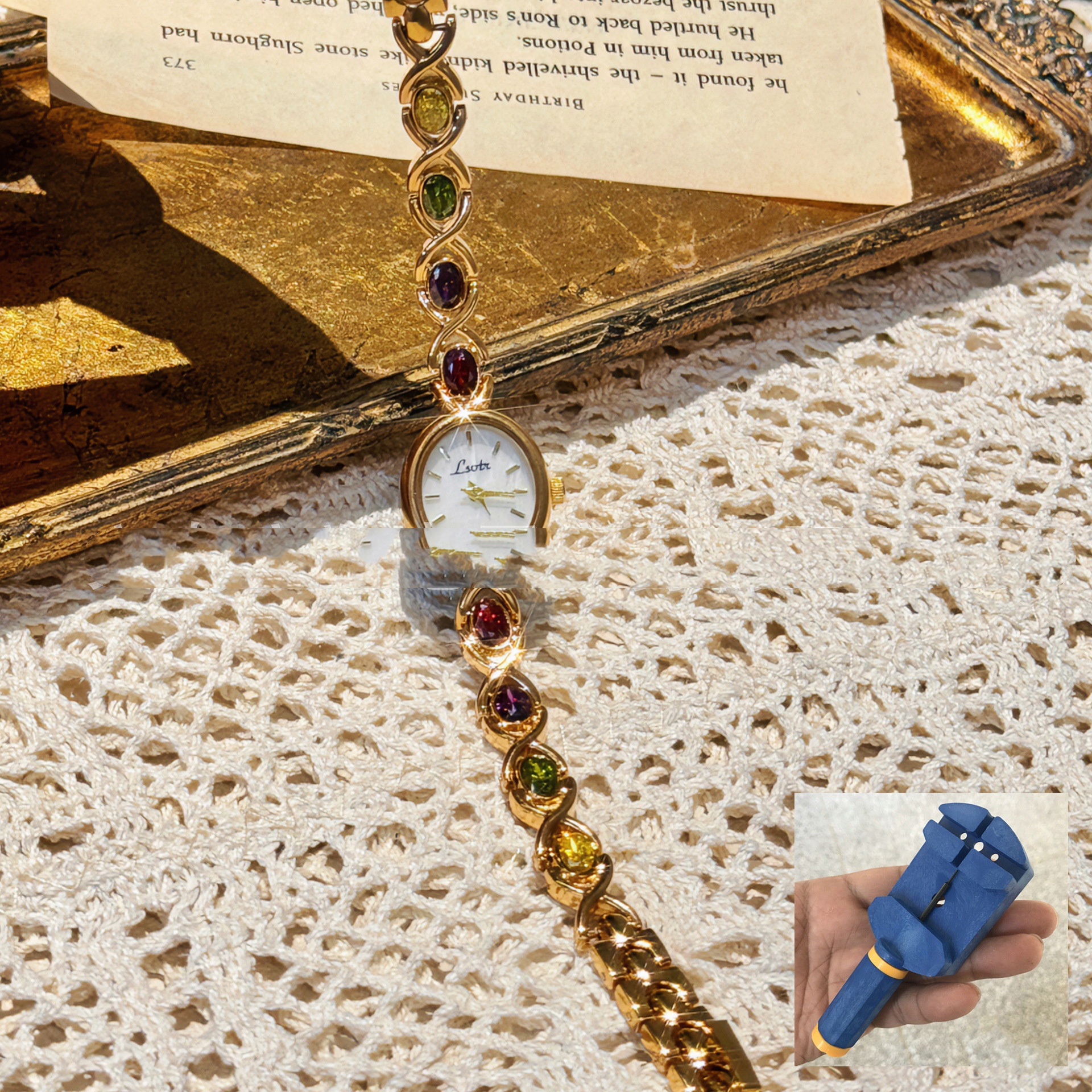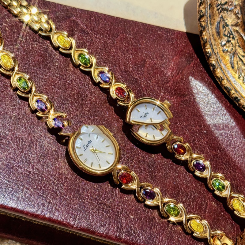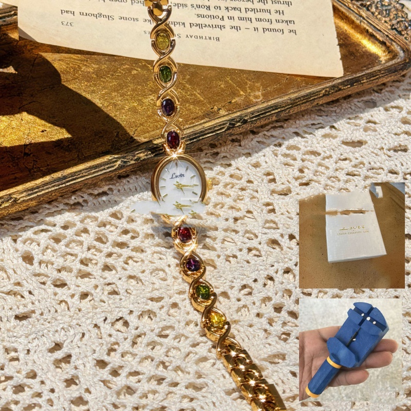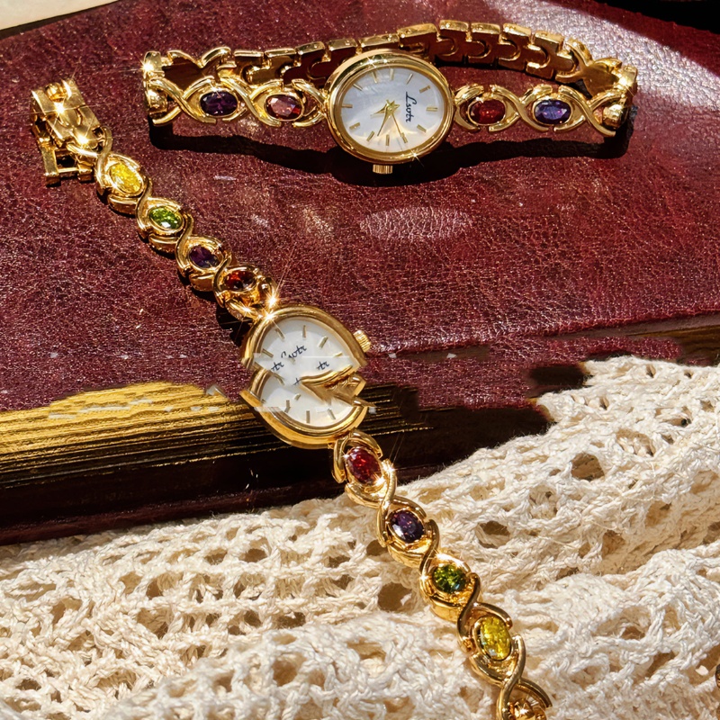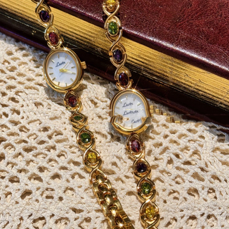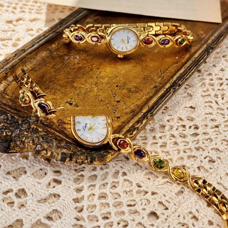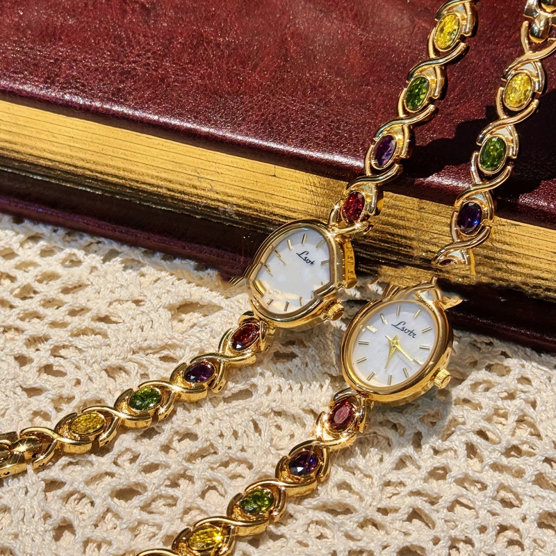 New Mid-ancient Fashion Oval Colored Gems Rainbow Women's Watch