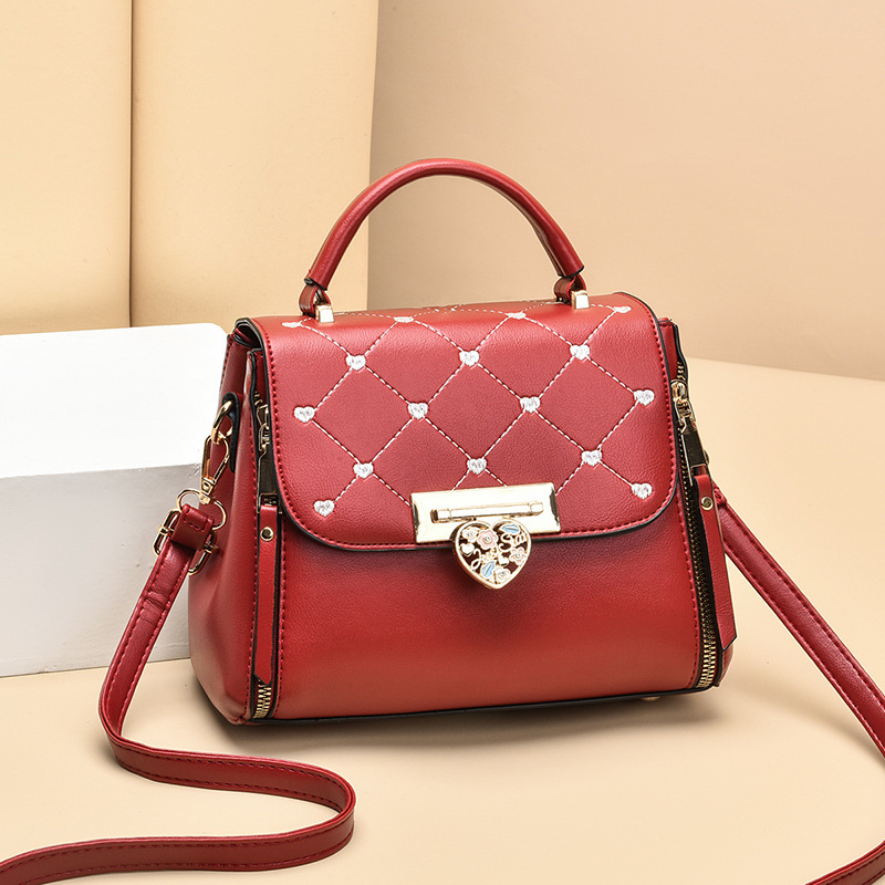 New Middle-aged PU Female Solid Color Small Square Metal Bag