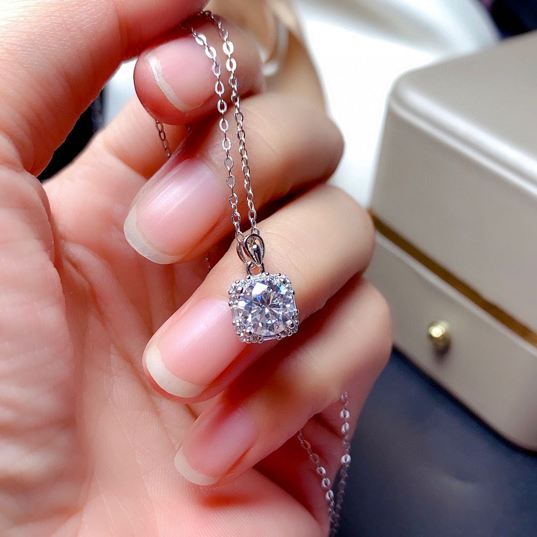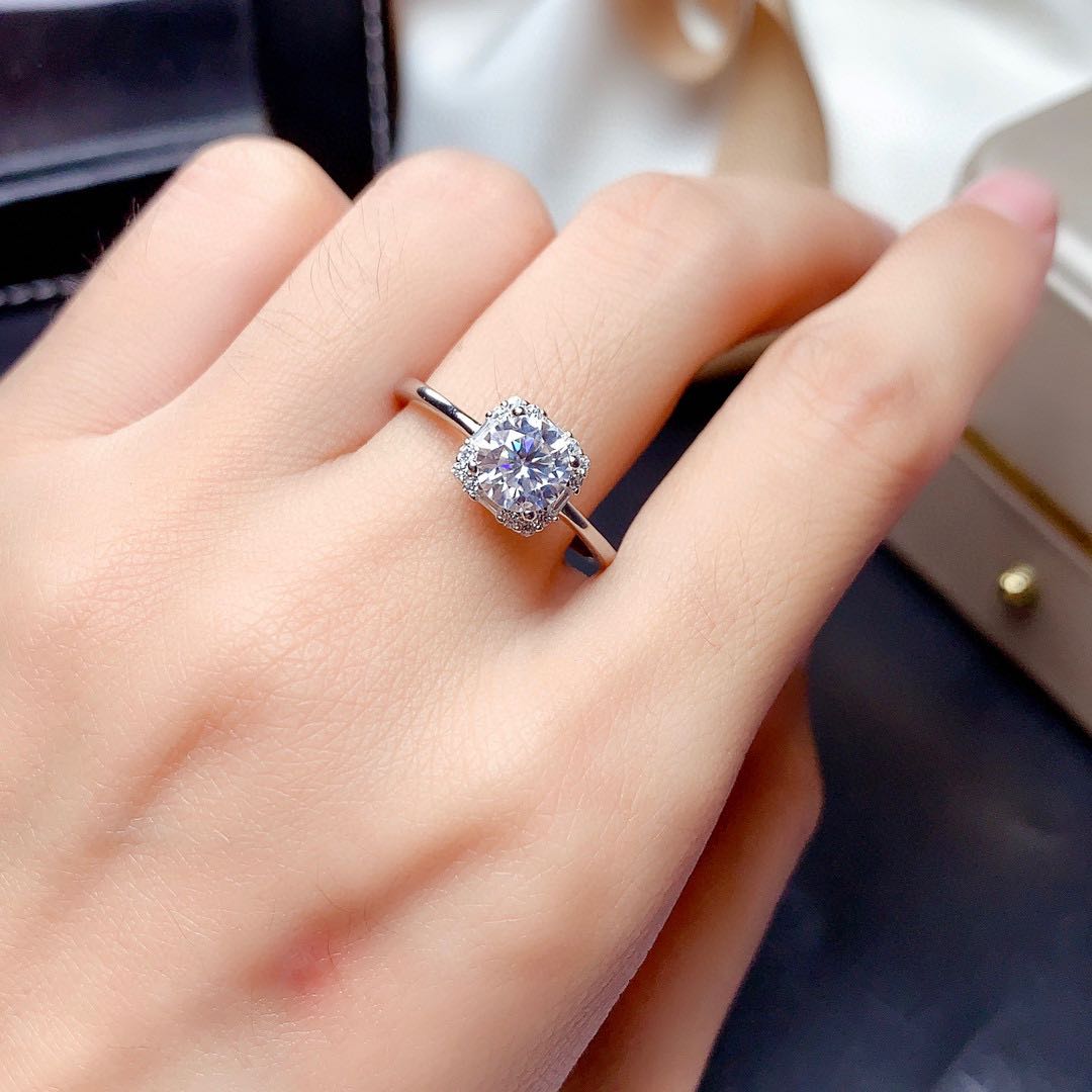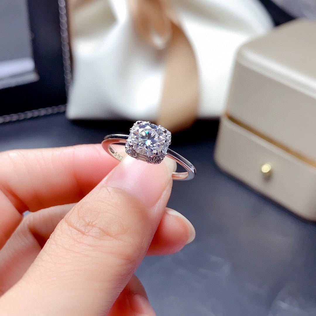 Features: new Moissan diamond set is shipped, the fire color is super good, the flashing carat diamond, the center stone is 1 carat, the circle is 6.5mm, the D color, the clarity is VVS1, the heart and arrow cut, the second drill pen