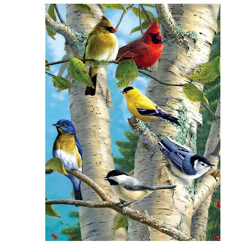 New Mosaic Diamond Embroidery Round Beads Birds IN The Birch Tree Diamonds Cross Oil Painting Beads Inlay Handwork Kits
