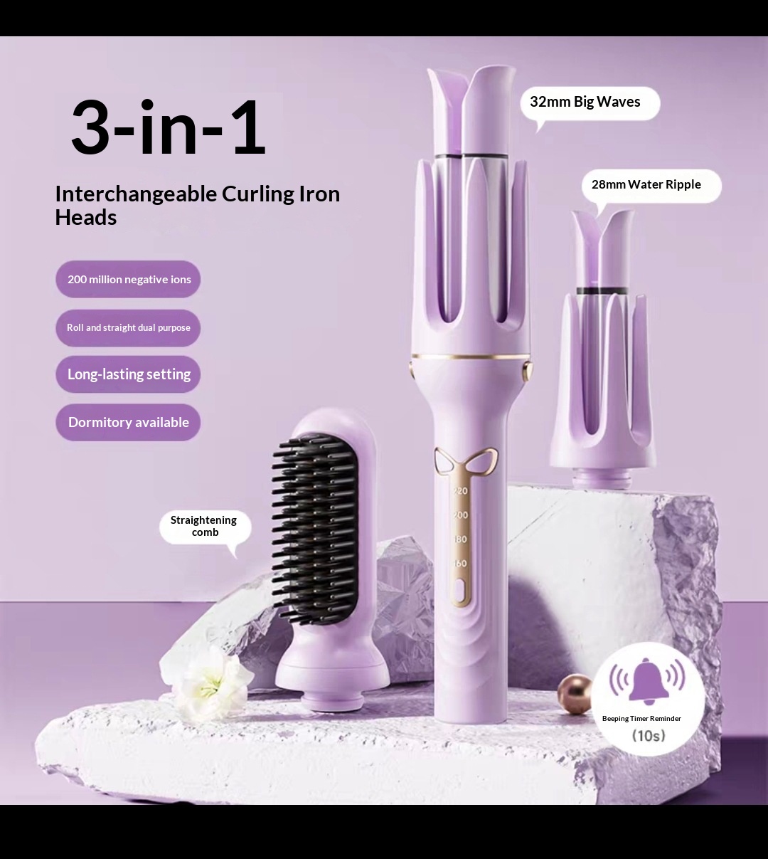 Power: Pink [32mm + 25mm + straightening comb + timer with phoenix-sound alert], Purple [32mm + 25mm + straightening comb + timer with phoenix-sound alert]; please note your preference for the export plug in the order remarks.