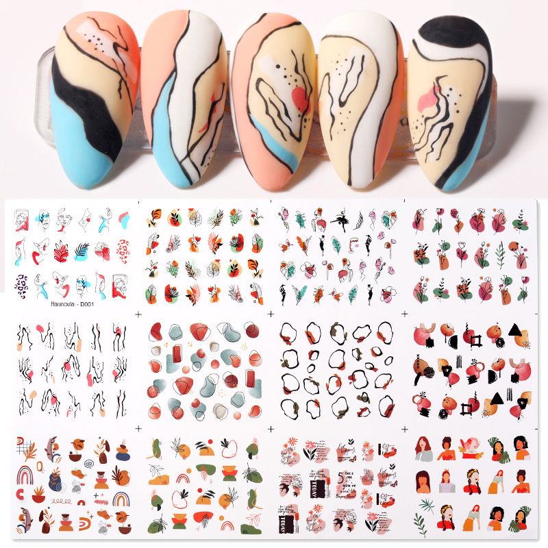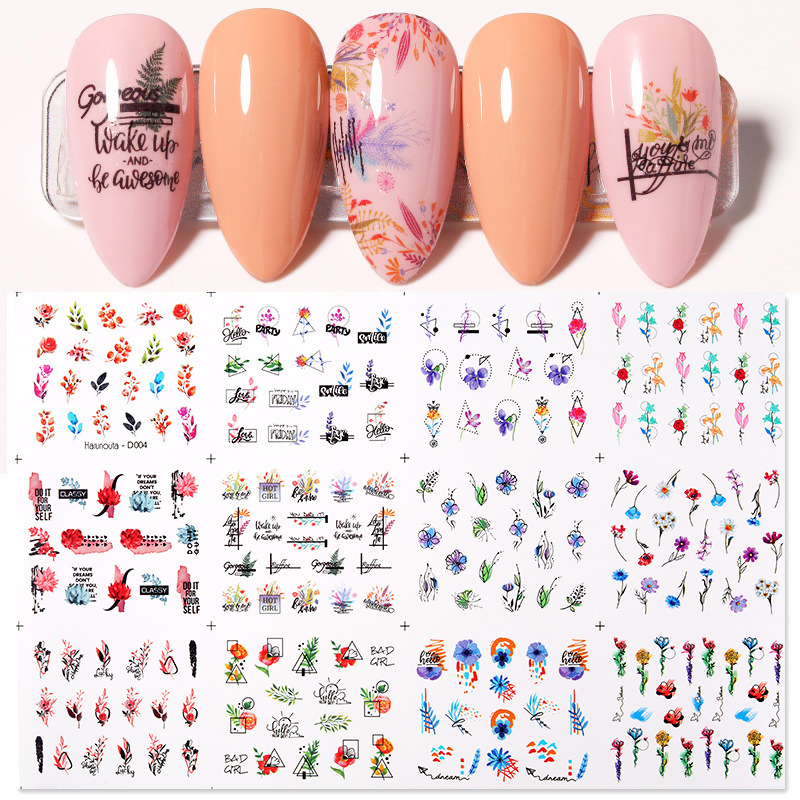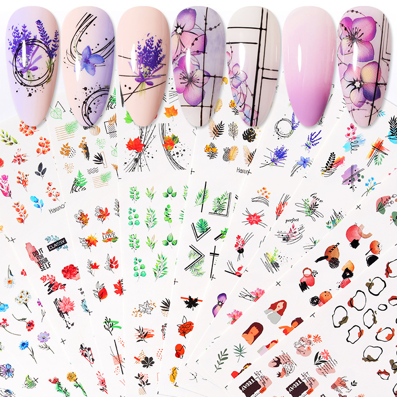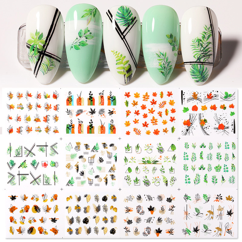 Song of Spring New Nail Watermark Sticker Art Leaves Flowers Character Decals 12 Large Decorations