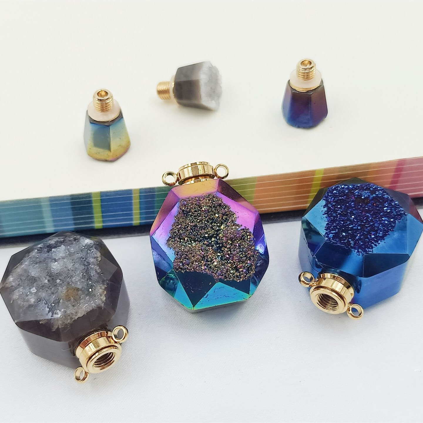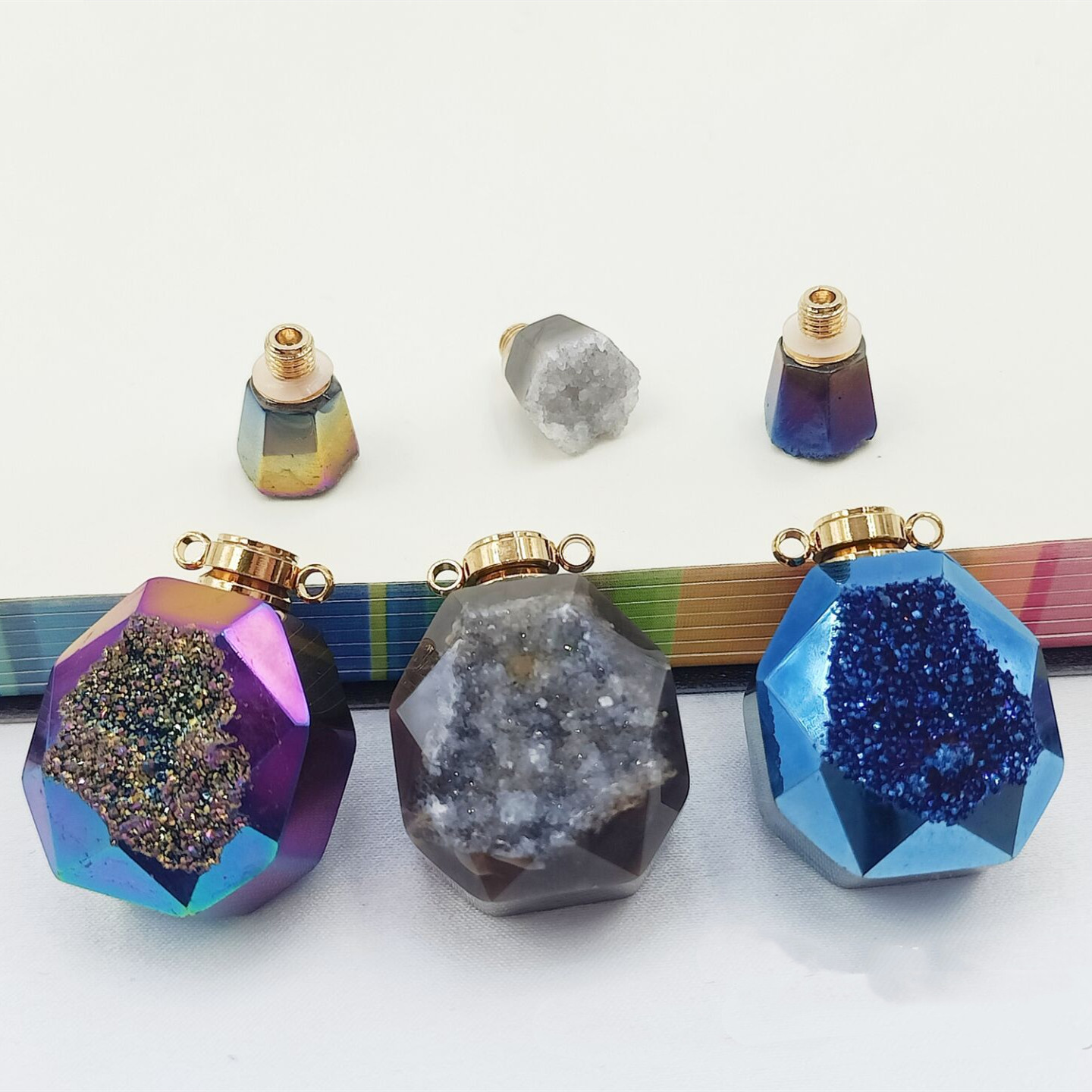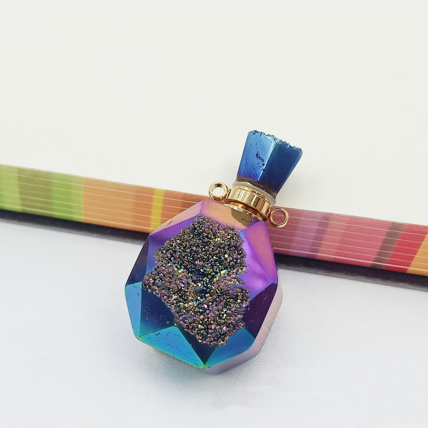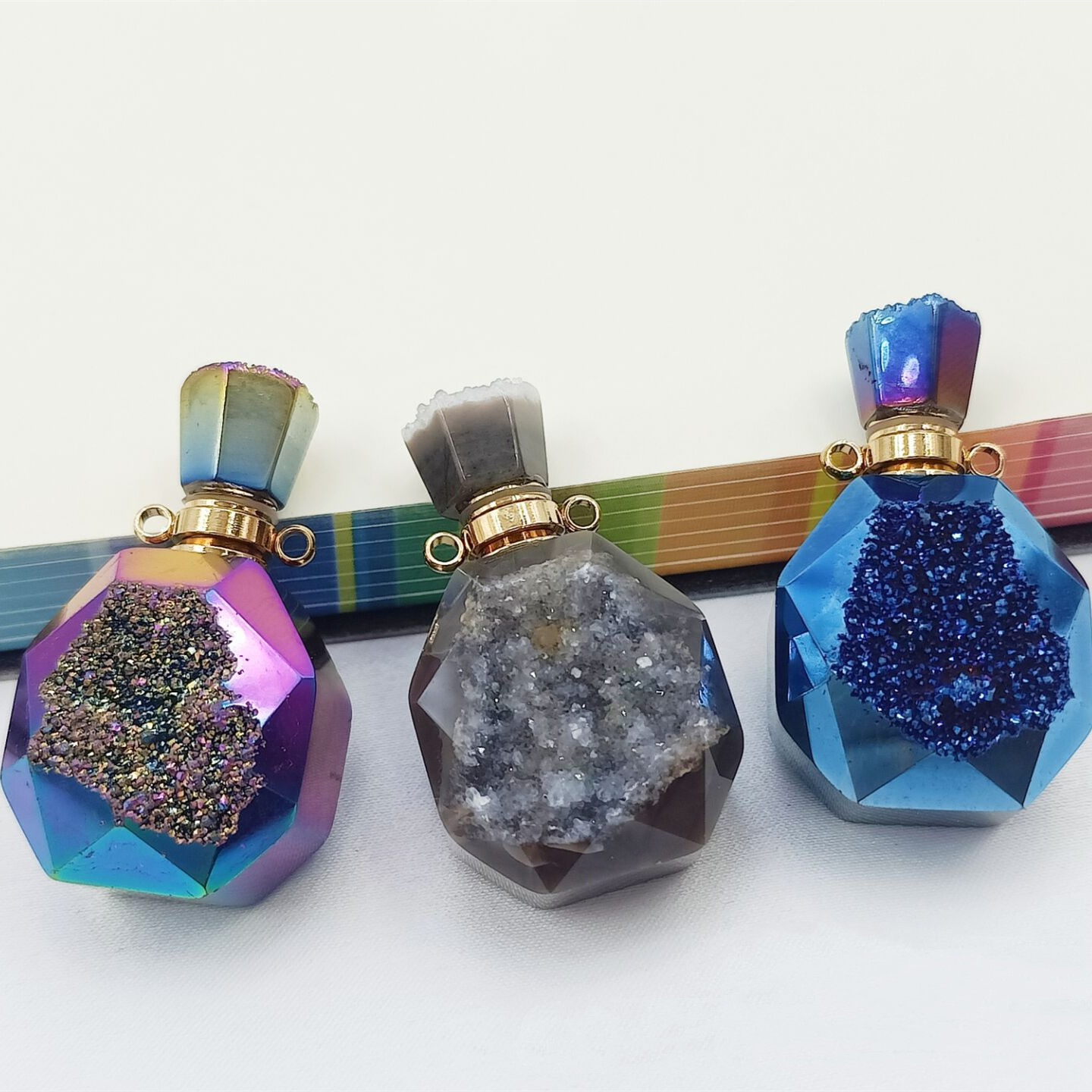 New Natural Agate Crystal Cluster Bottled Pendant