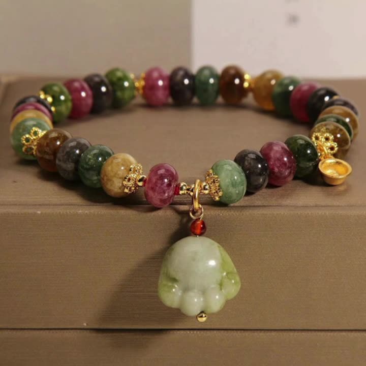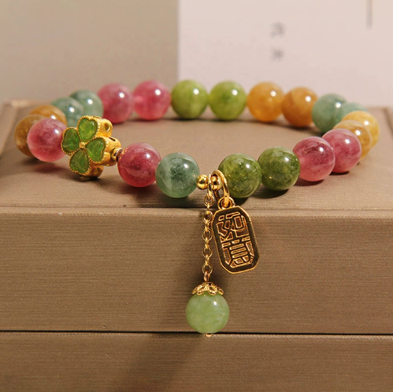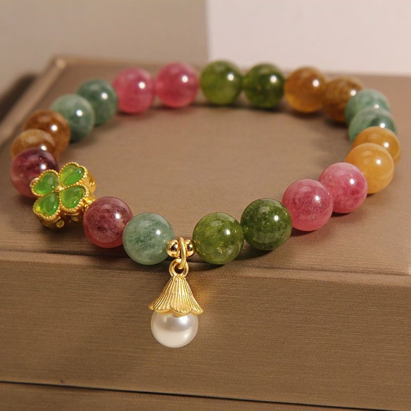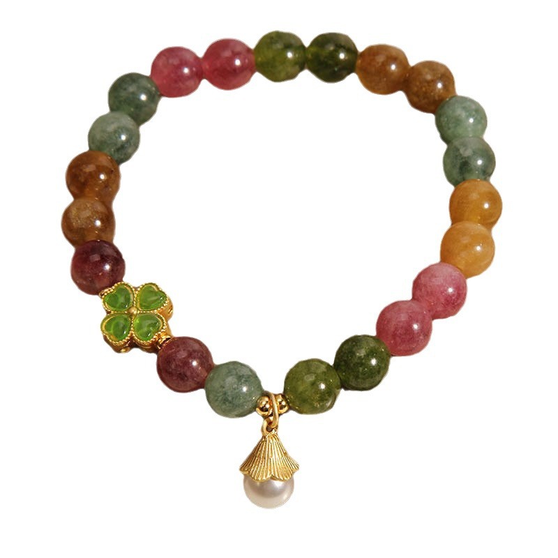 Style: colorful tourmaline bracelet women's four-leaf clover pearl pendant bracelet, simple bracelet colorful tourmaline bracelet