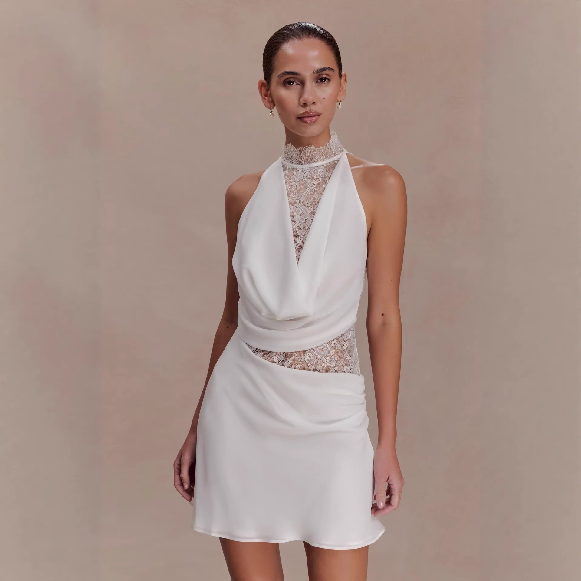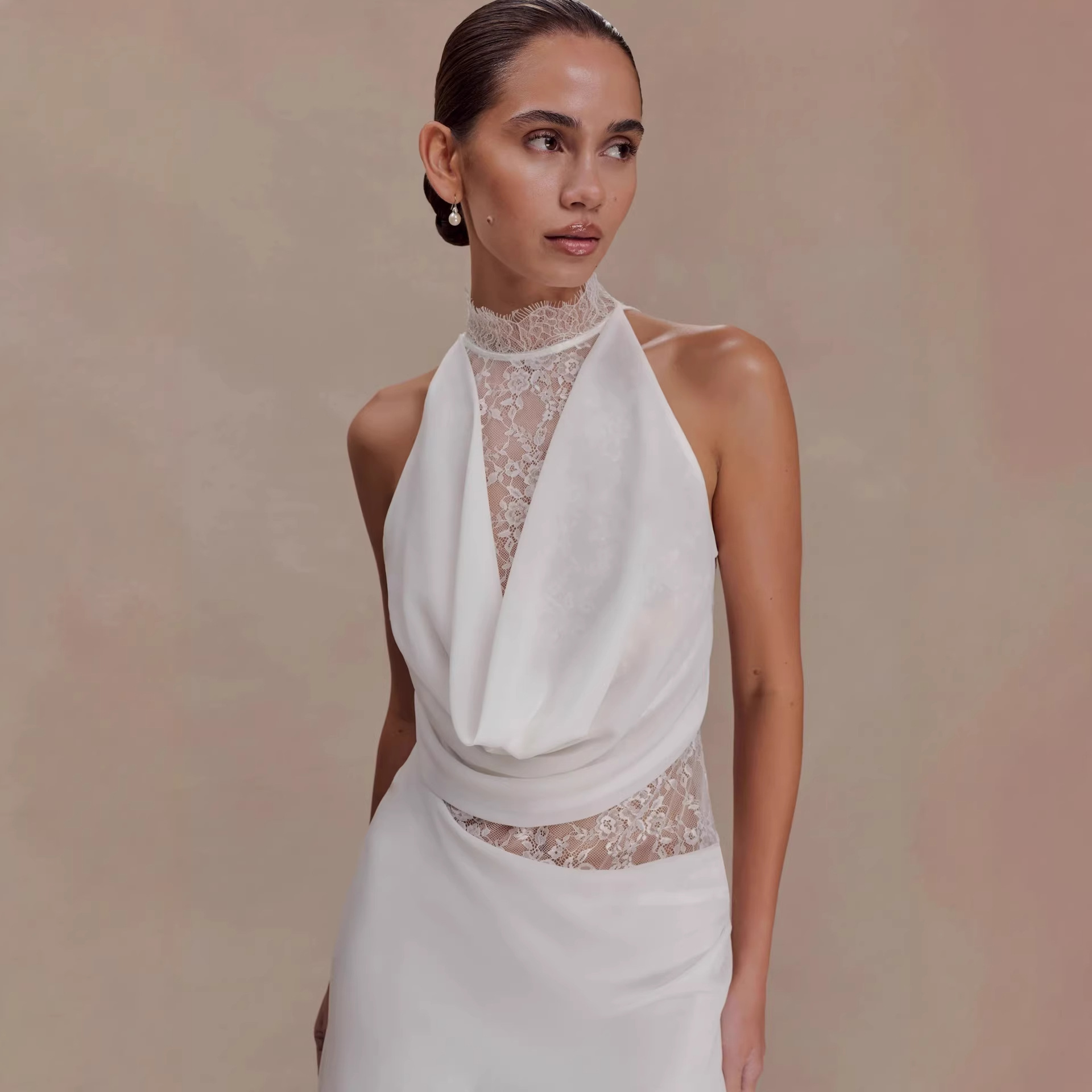 Popular elements: lace, halter neck design