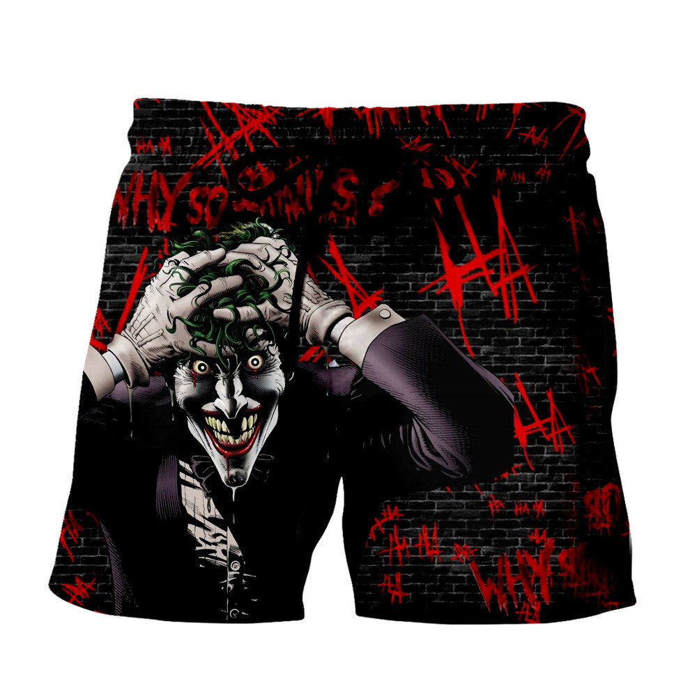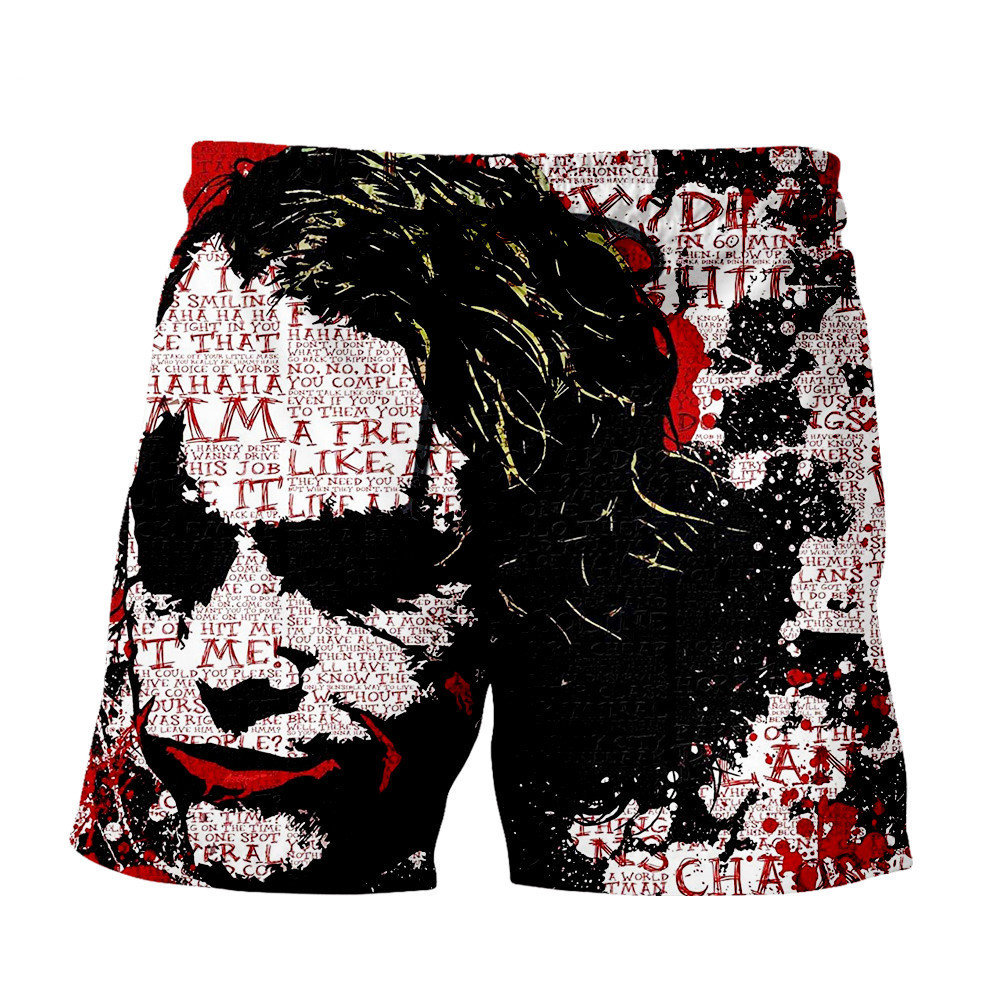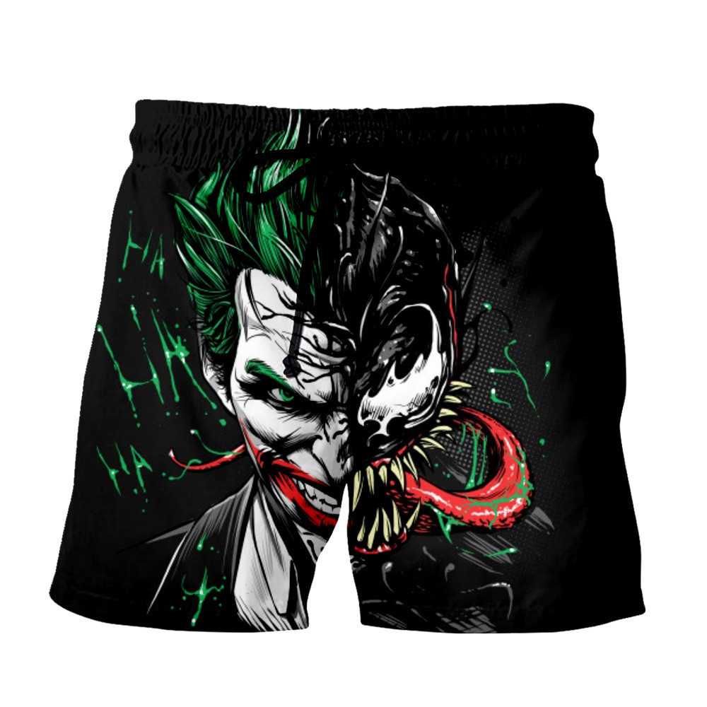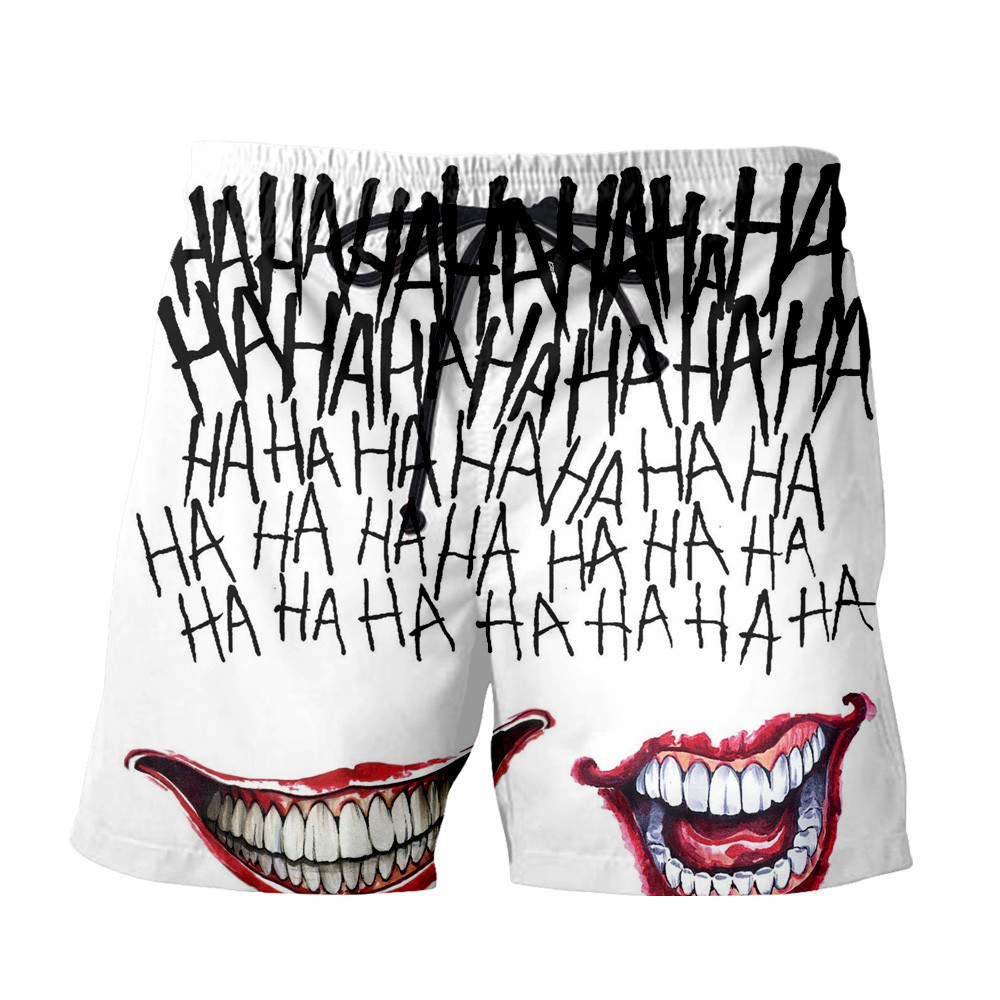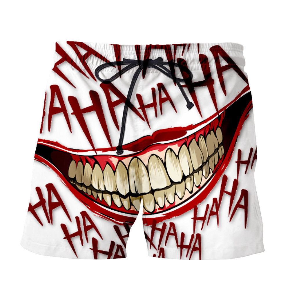 Clown white big mouth shorts, clown black silver teeth shorts, clown black letter shorts, clown green hair shorts, clown black hair shorts, clown eye shorts, clown white letter shorts, clown white small mouth shorts, clown scratching shorts, clown Purple letter shorts, clown venom shorts