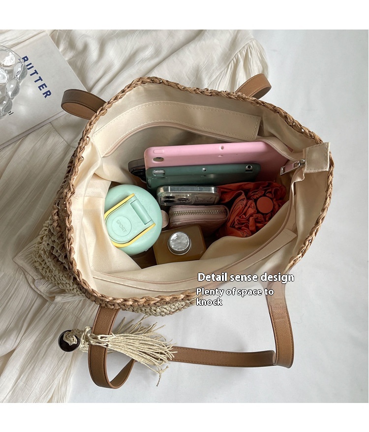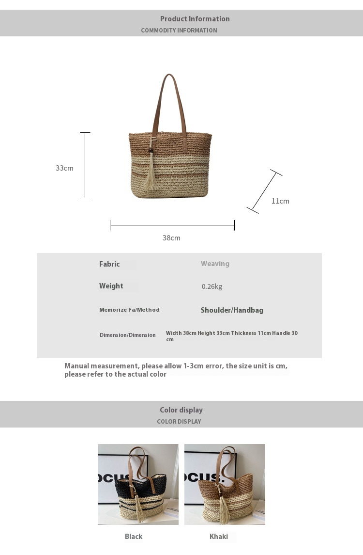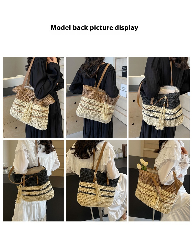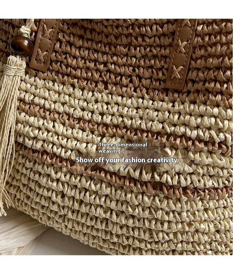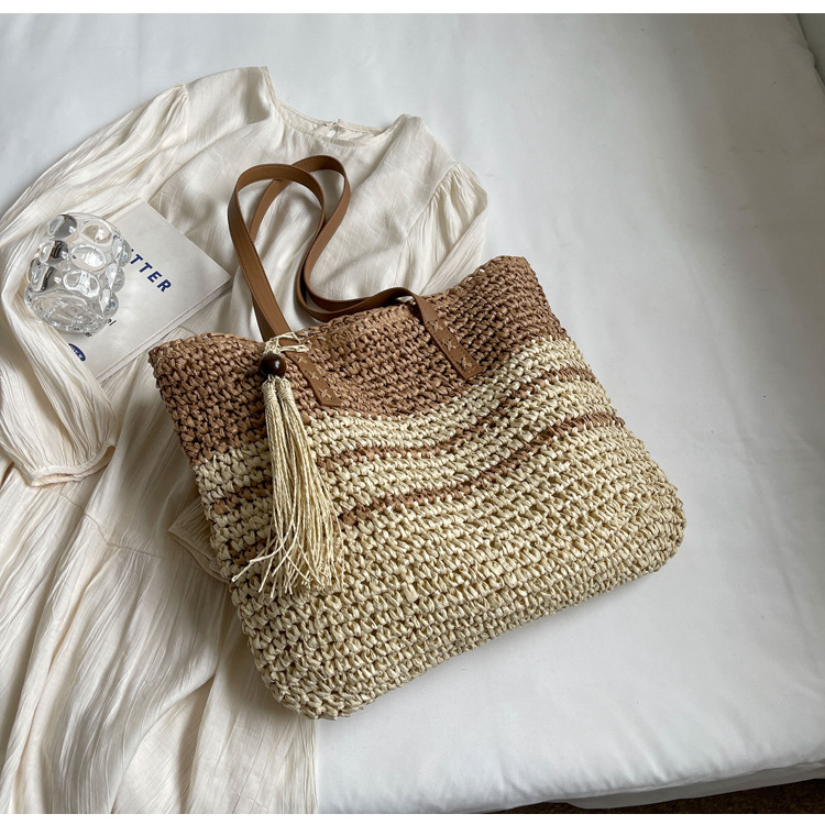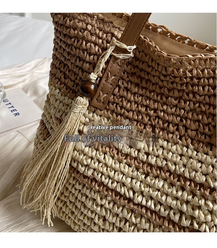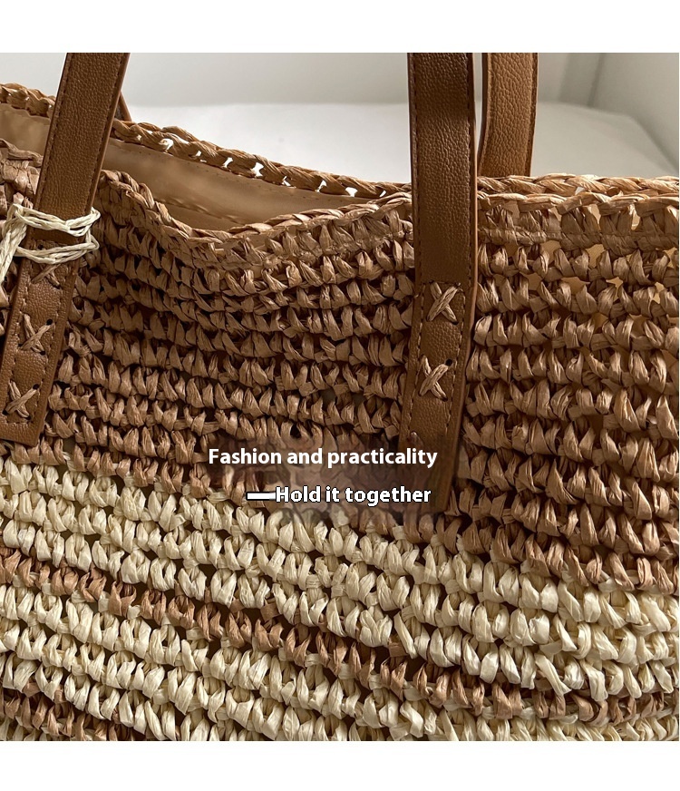 New Niche Contrast Color Large Capacity Woven Bag
