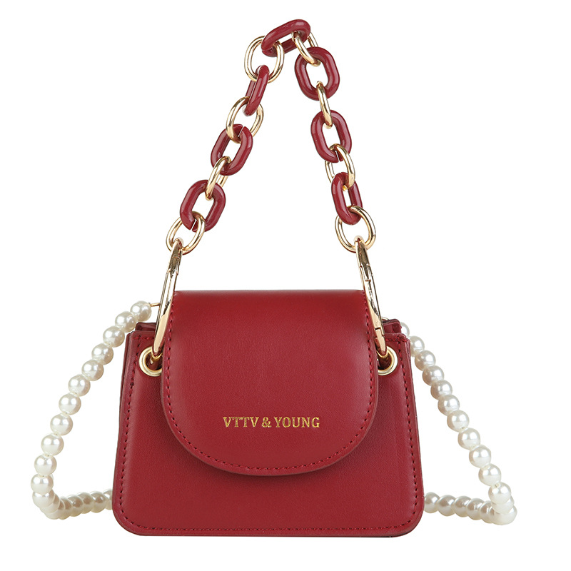 New One Shoulder Fashion Pearl Chain Small Square Bag