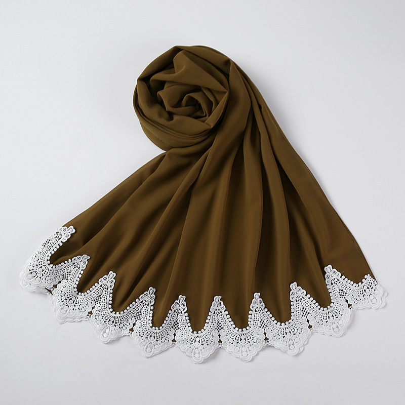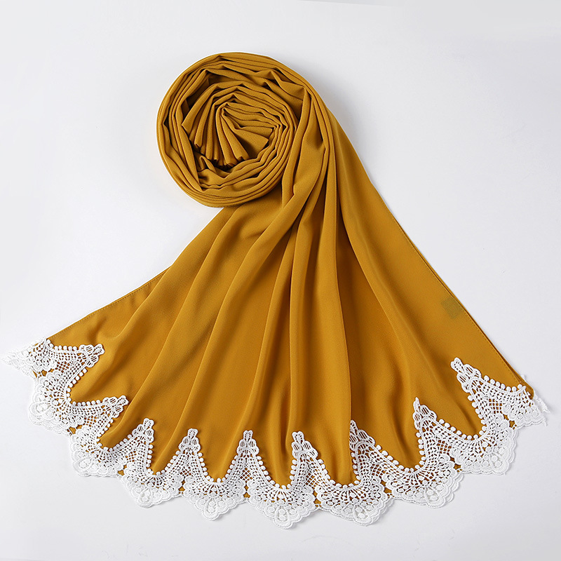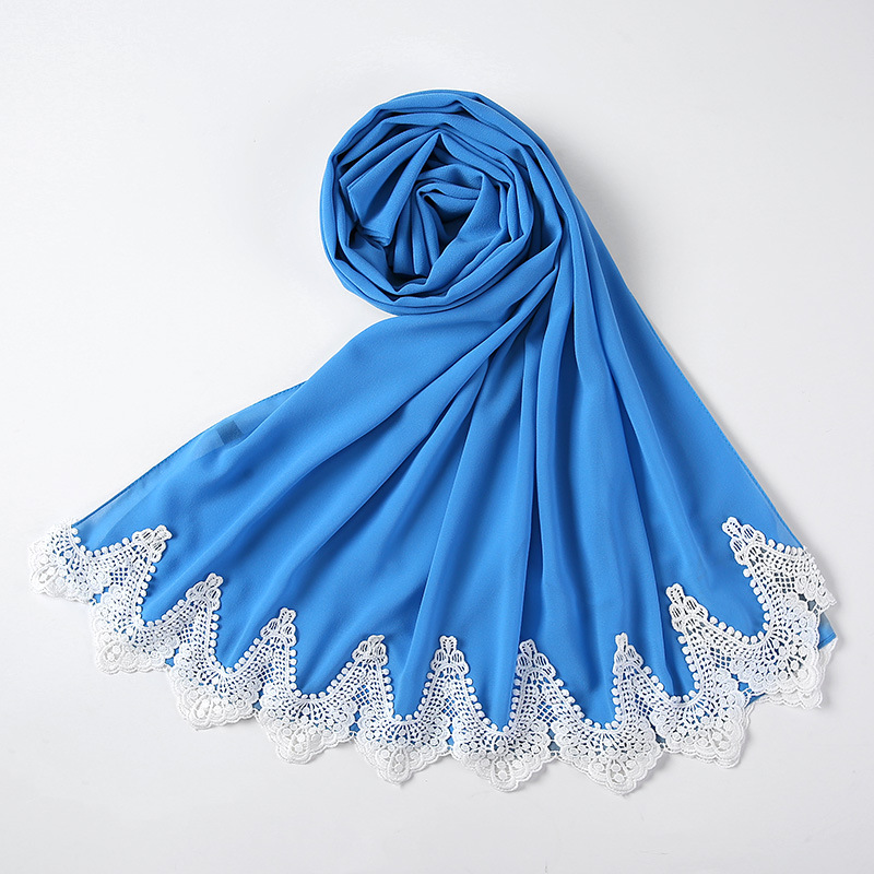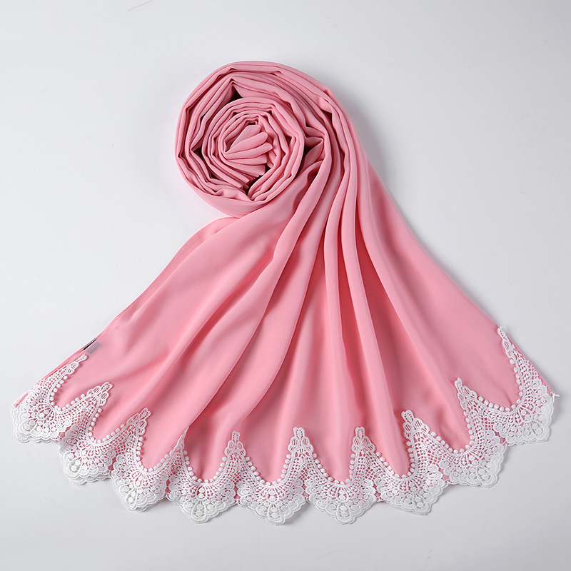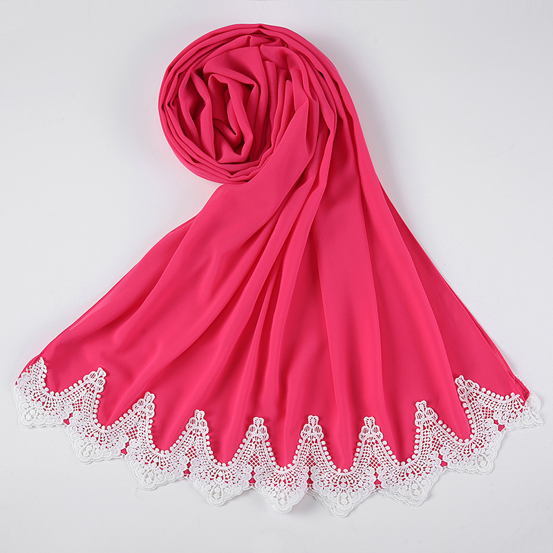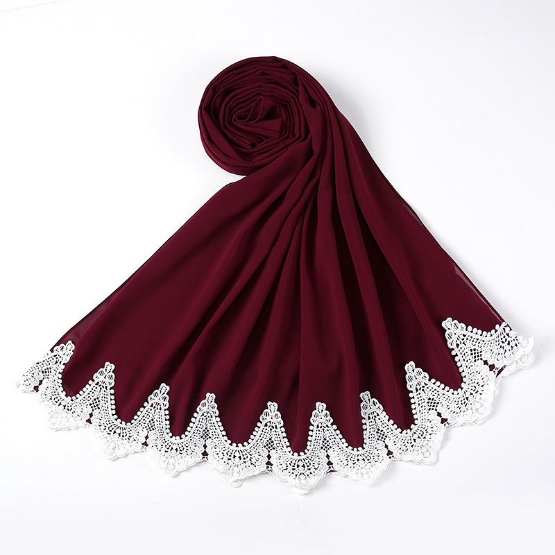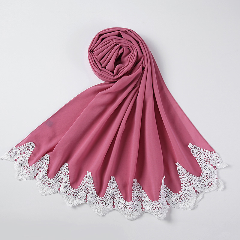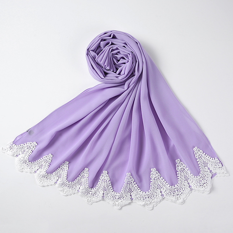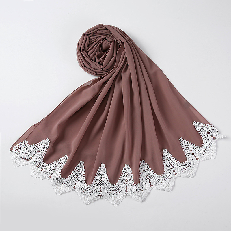 New Pearl Chiffon Scarf Malaysia Fashion Stitching Lace Scarf