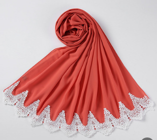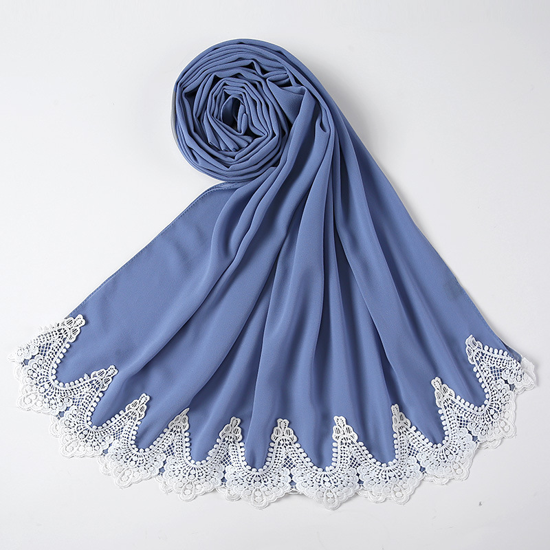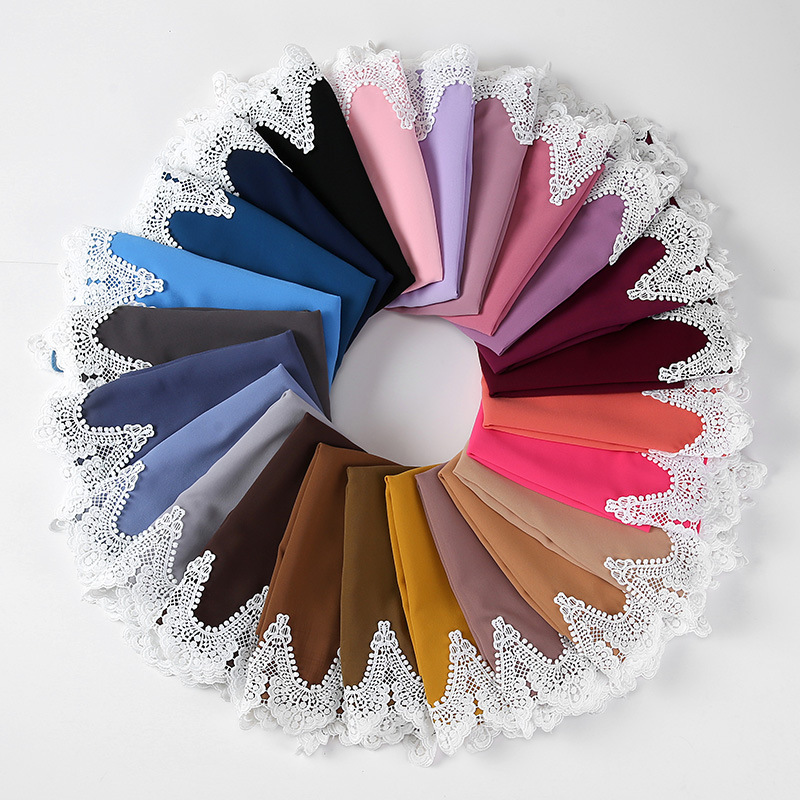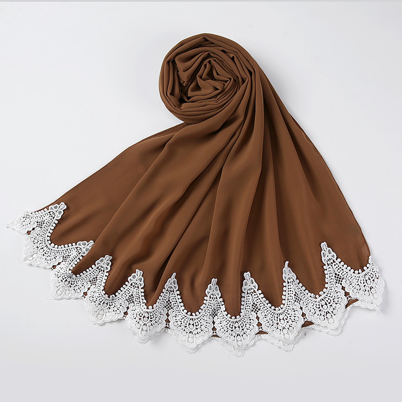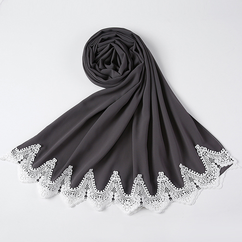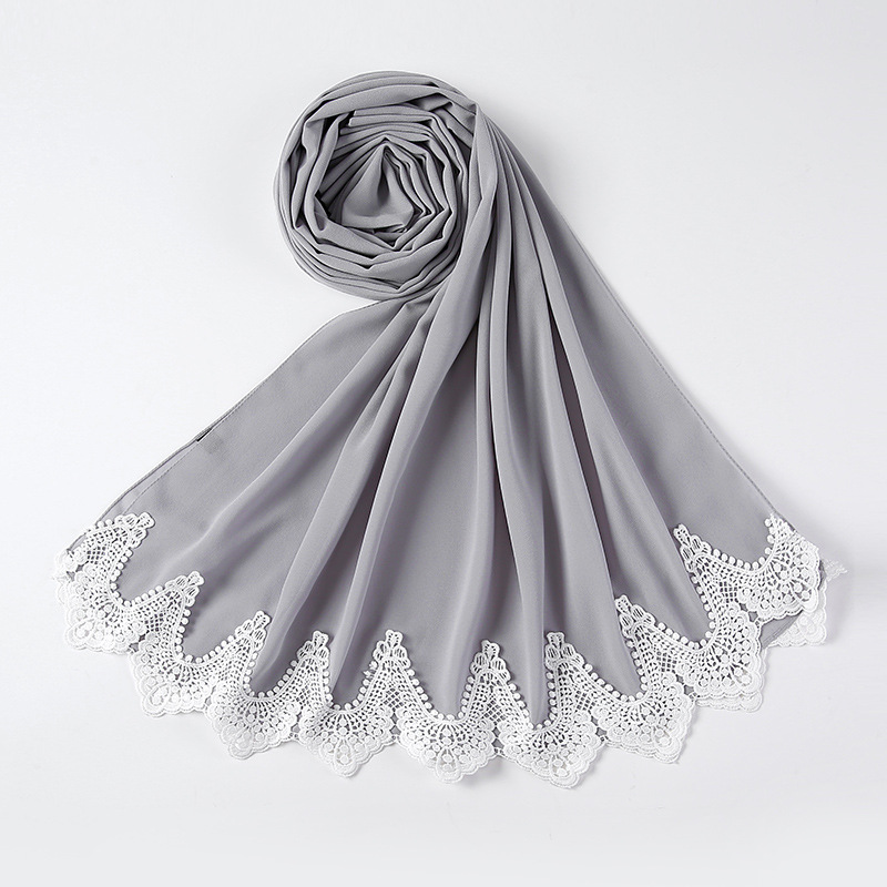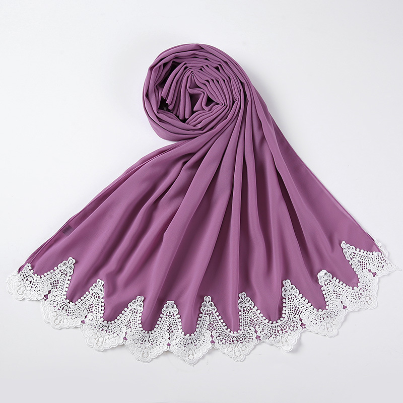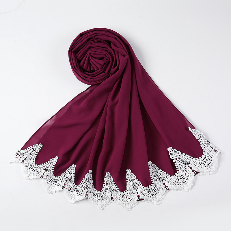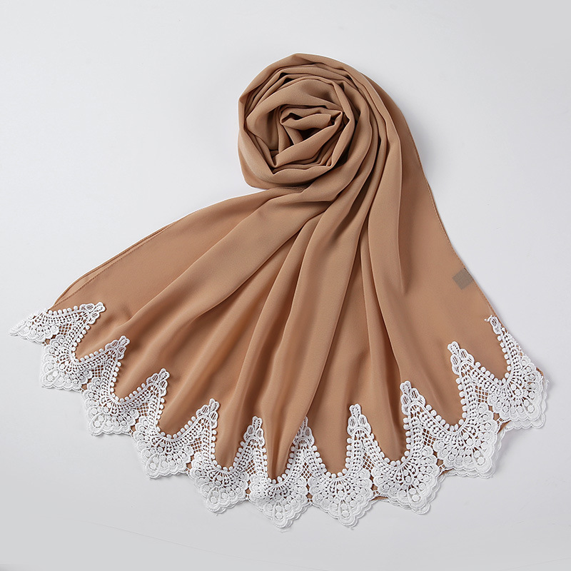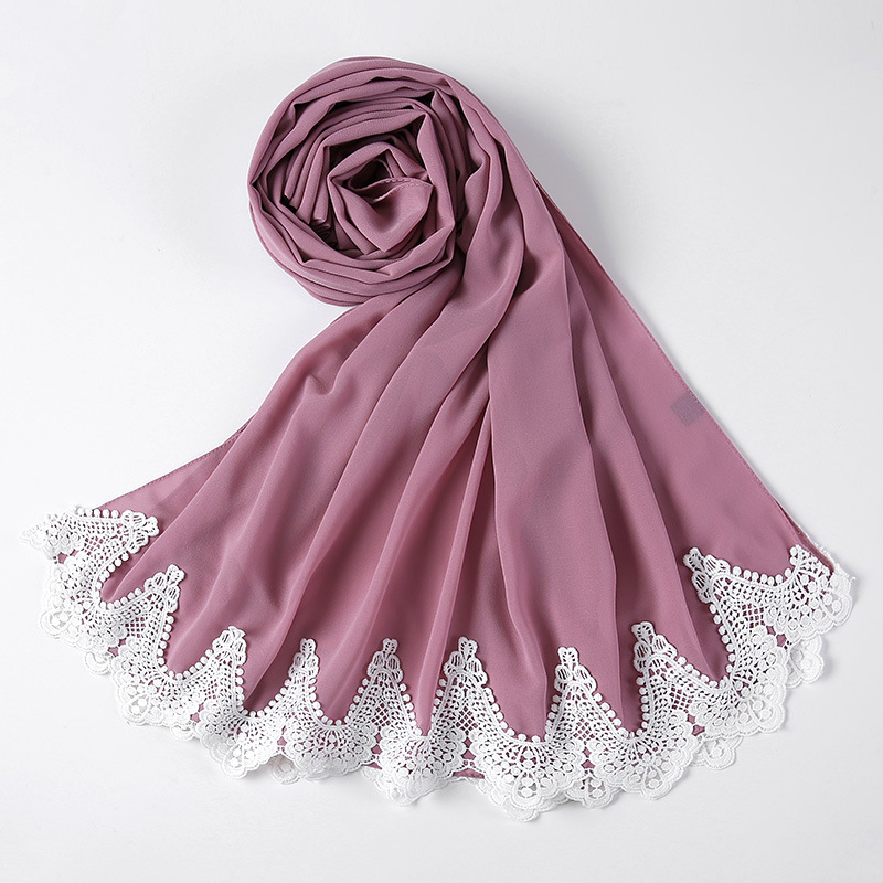 New Pearl Chiffon Scarf Malaysia Fashion Stitching Lace Scarf
