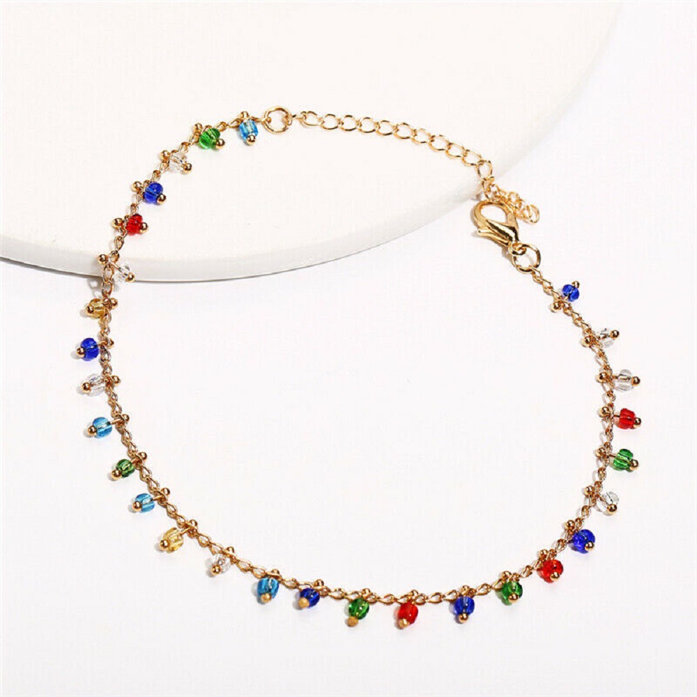 New personality color rice bead gold anklet bracelet dual-use jewelry