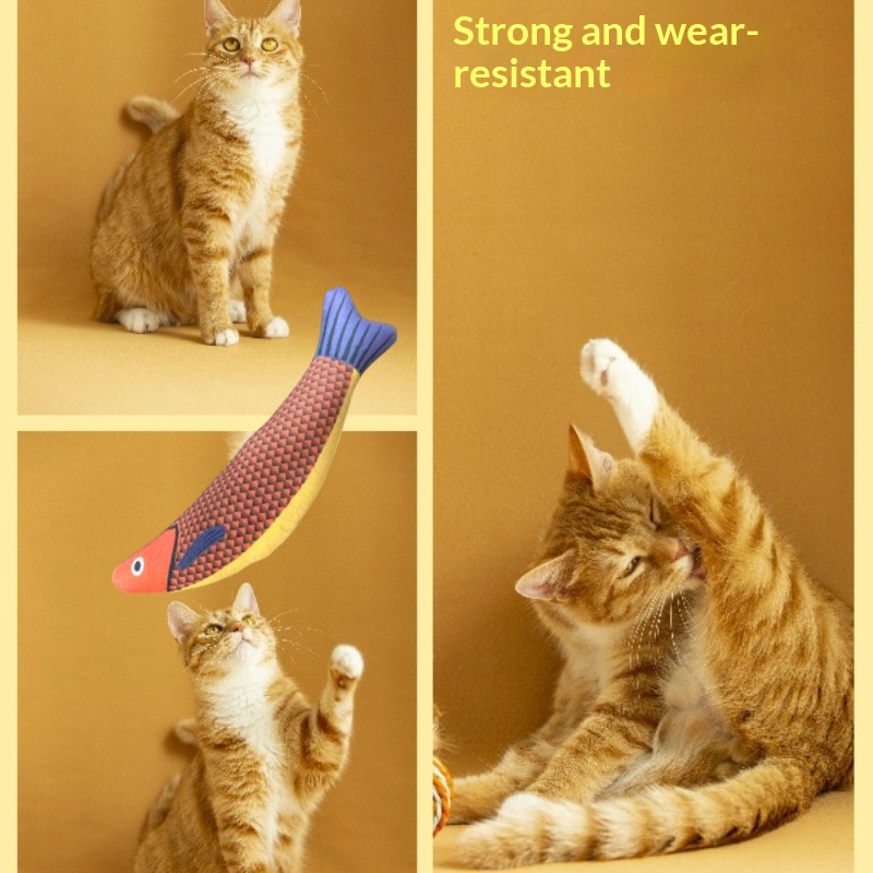 Product information:Color: Yellow, green, orange Style: Mackerel Material: Linen Category: Pet toy