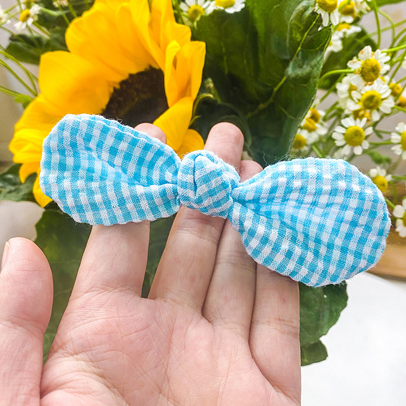 Color: yellow grid skirt + yellow grid hairpin -, pink flower skirt + pink grid hairpin, blue polka dot yarn skirt + blue grid hairpin, blue grid skirt, + green grid hairpin