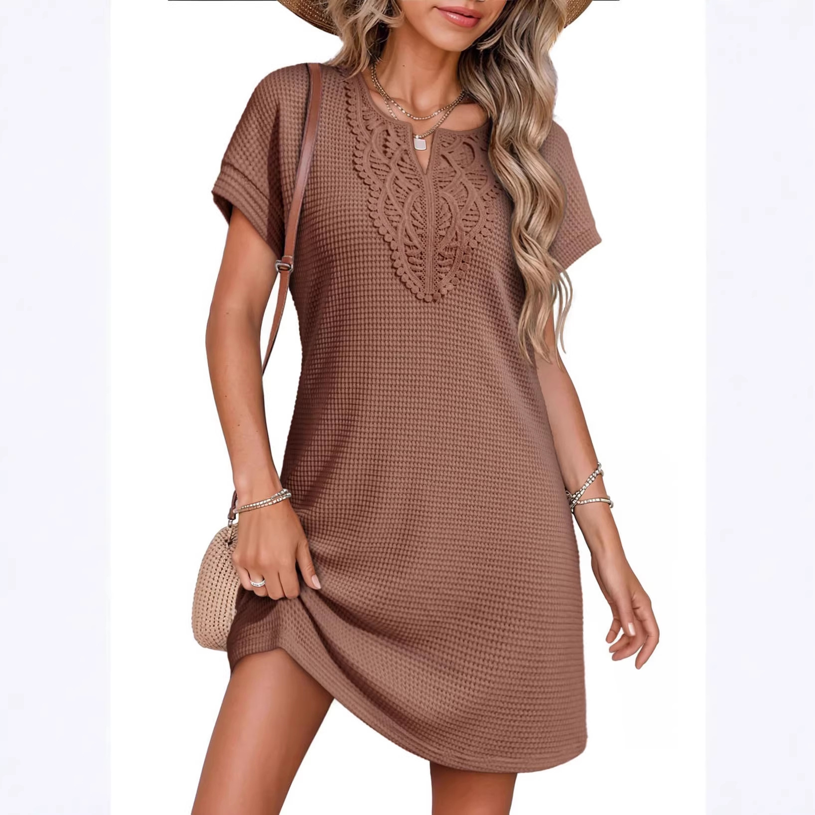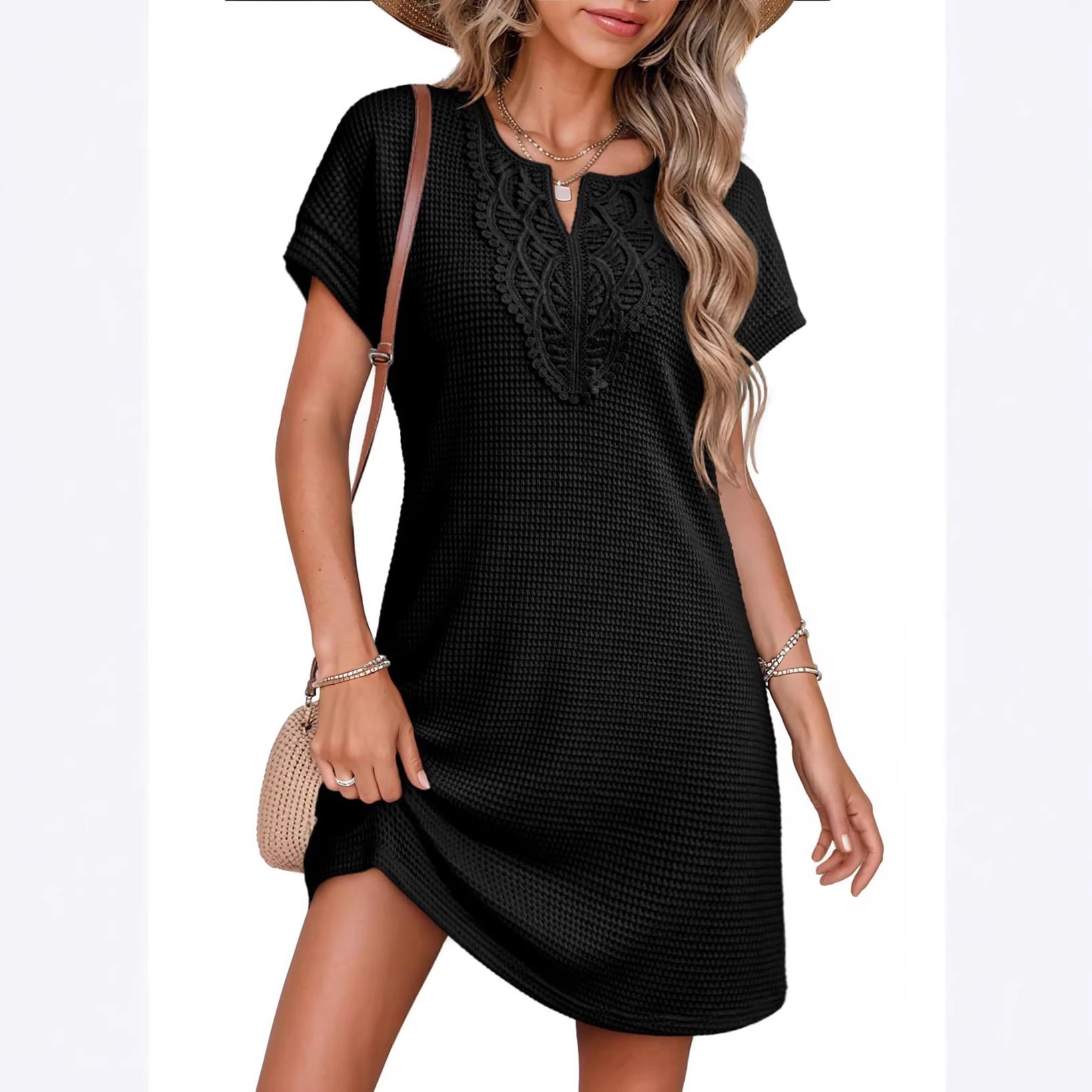 New Pineapple-Print Lace V-Neck Short-Sleeve Casual Blouse Dress For Women