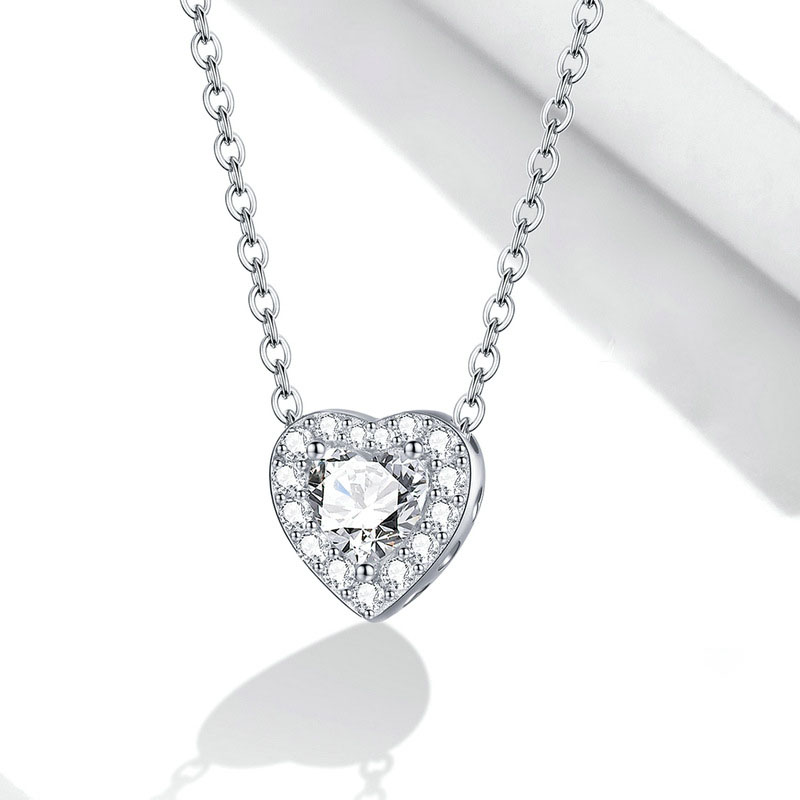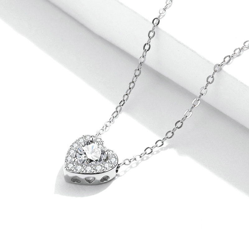 New Platinum-Plated Diamond Love Necklace Women European And American Simple Style S925 Silver Clavicle Chain Scn455