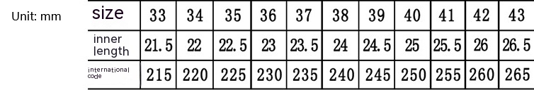 Size: 34, 35, 36, 37, 39, 38, 40, 41, 42, 43