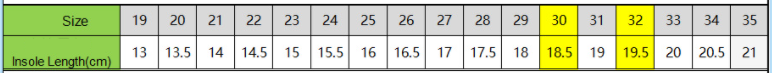 Size : 19,20,21,22,23,24,25,26,27,28,29,30,31,32,33,34,35