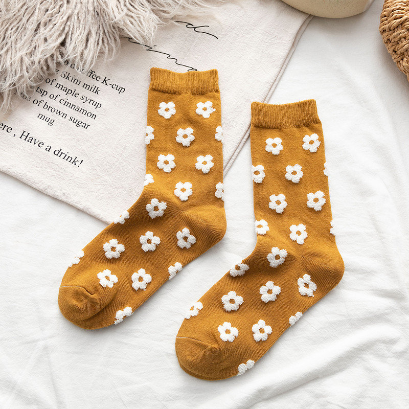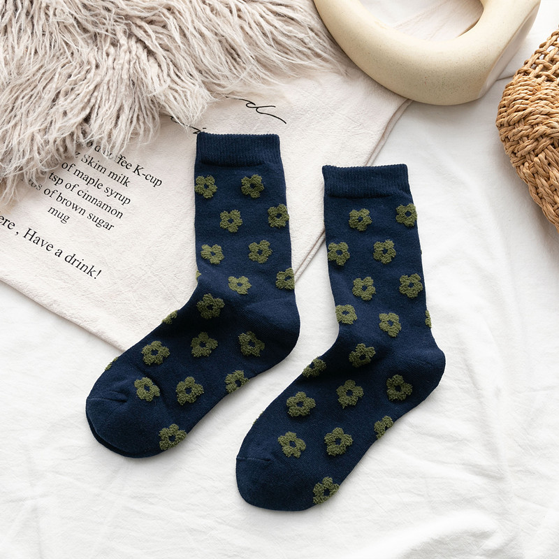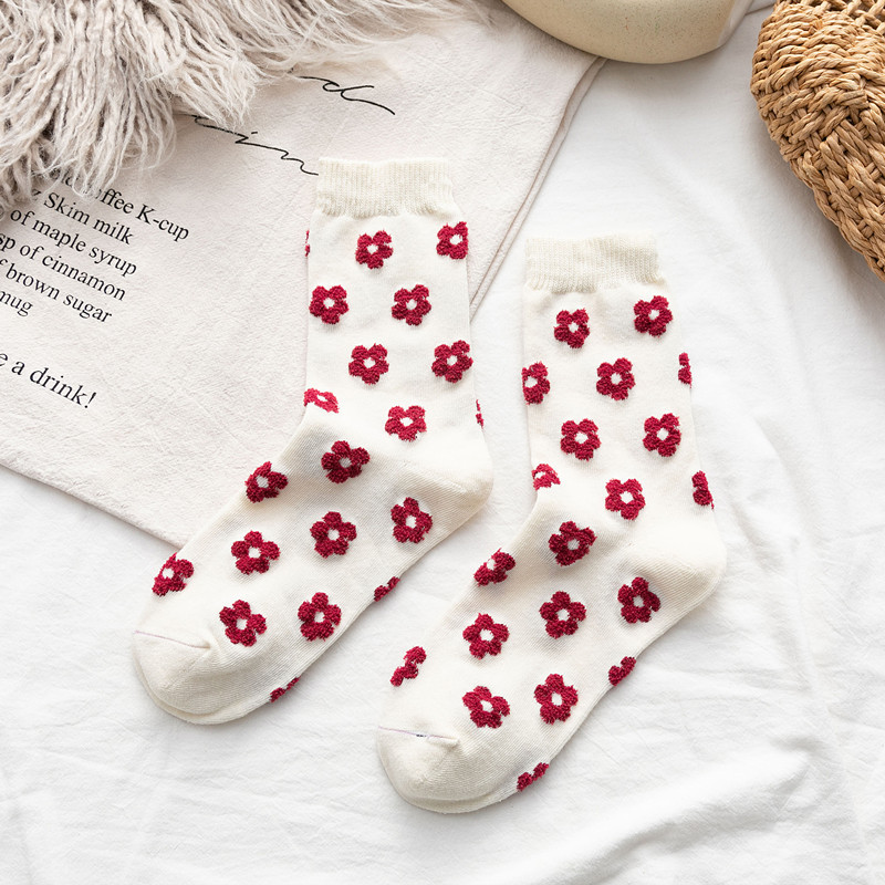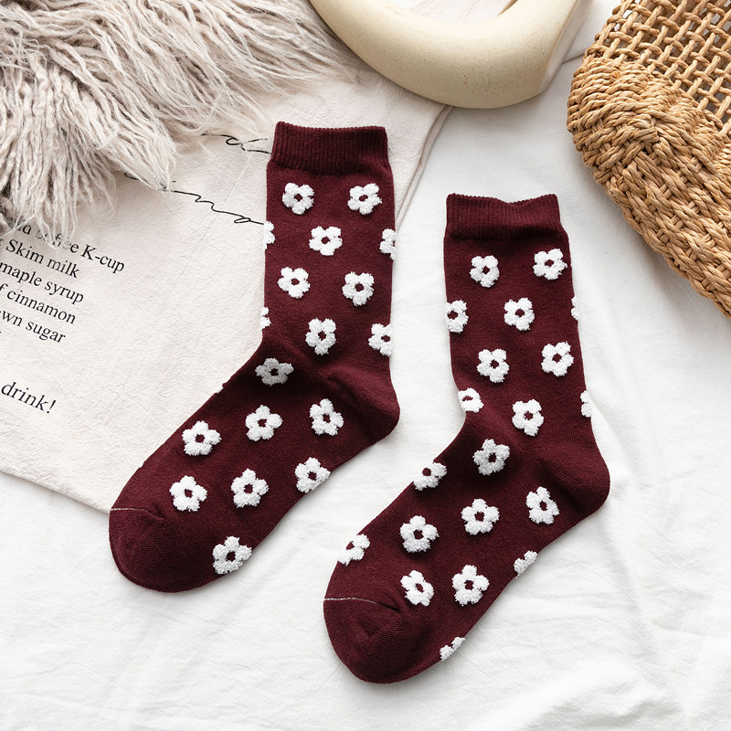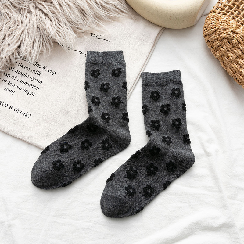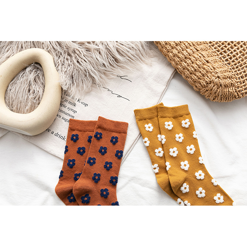 New Products Socks Cotton Japanese Three-Dimensional Small Flowers Ladies Medium Tube Personality Fashion