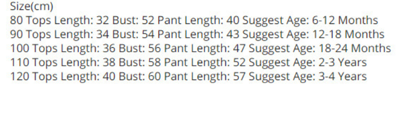 Suitable height :80cm (6-12M),90cm (12-18M),100cm (18-24M),110cm (2-3Y),120cm (3-4Y)