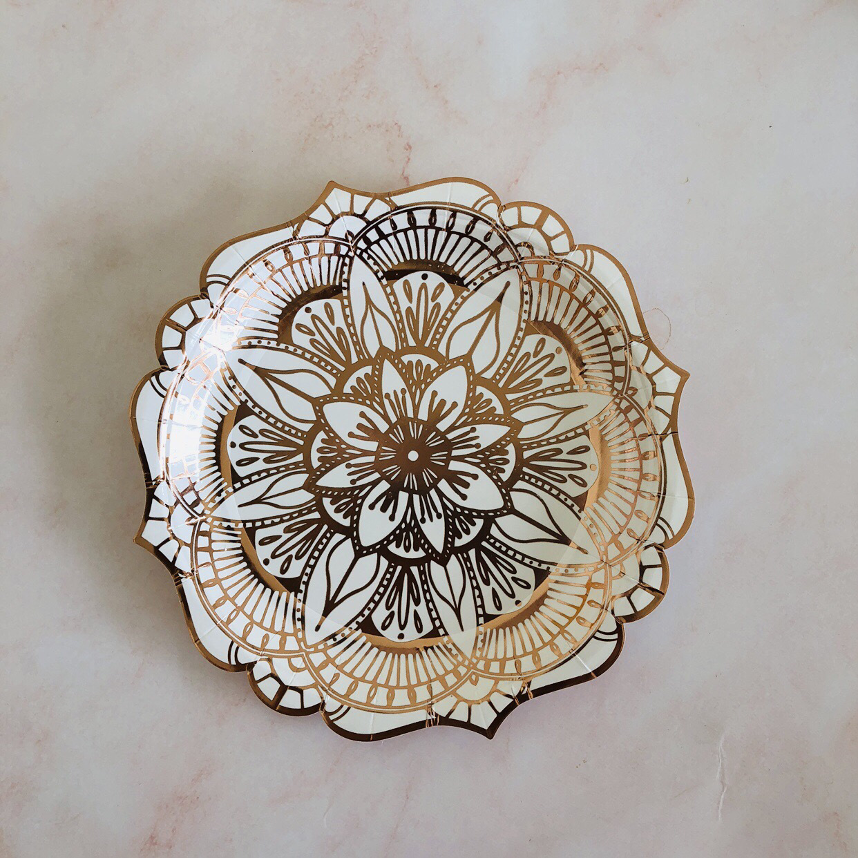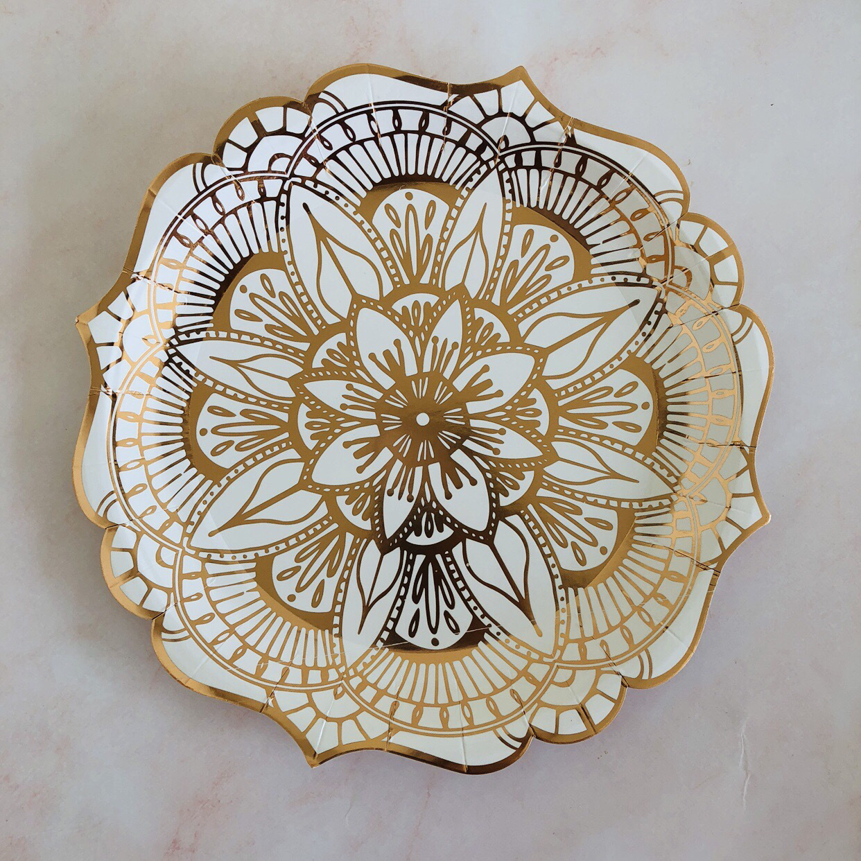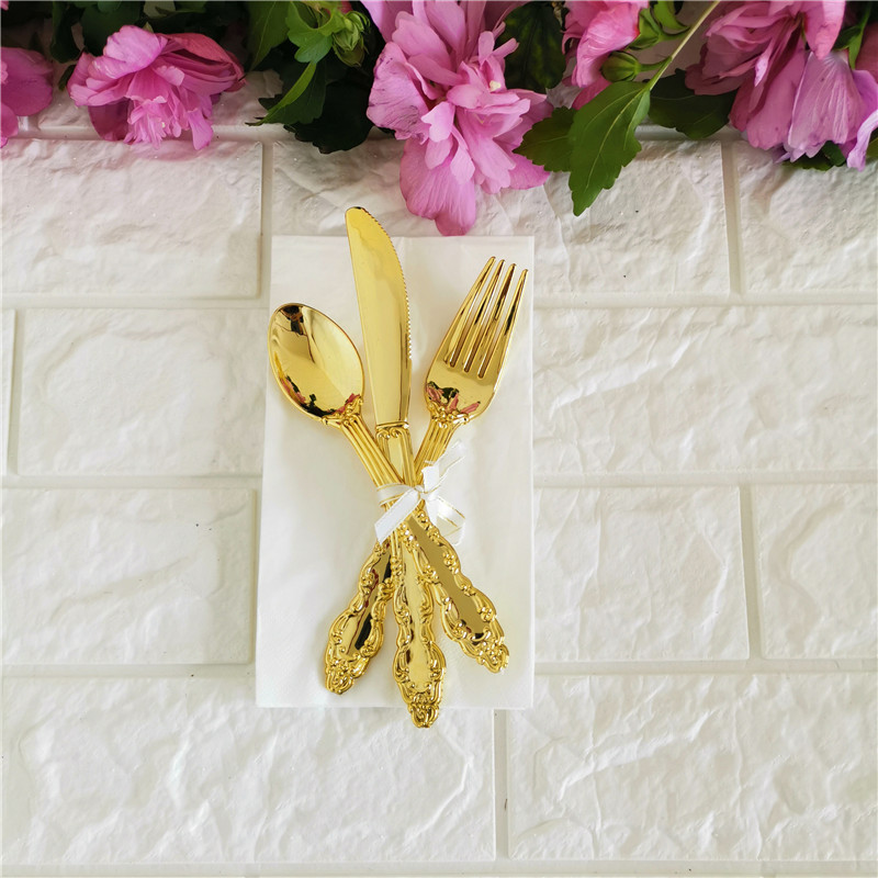 Plastic tableware and paper: including knife*1, spoon*1, knife*1, paper towel*1, gold