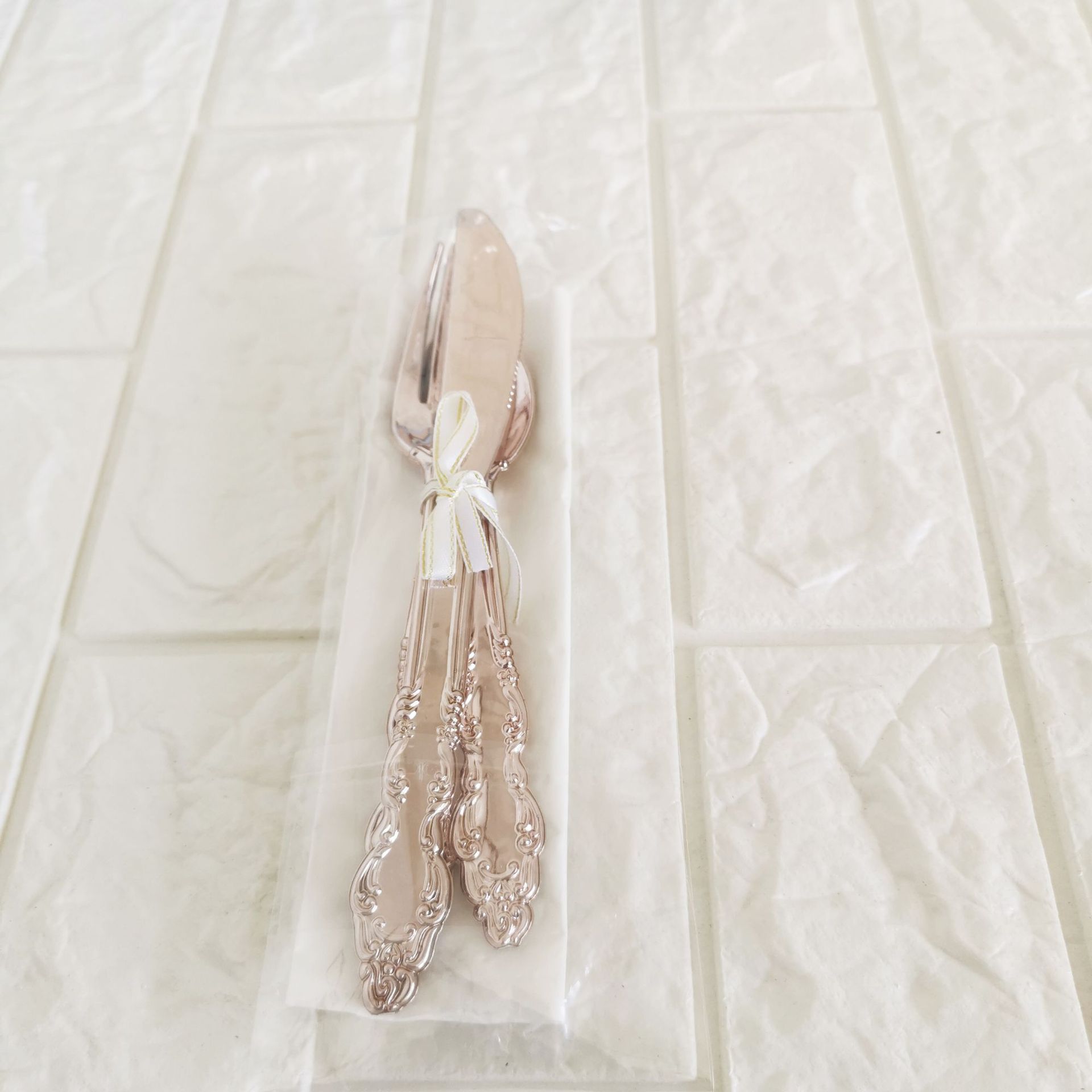 Plastic tableware A: including knife*1, spoon*1, knife*1, paper towel*1, rose gold