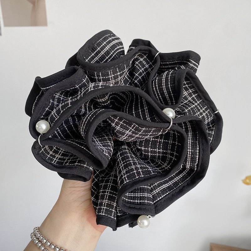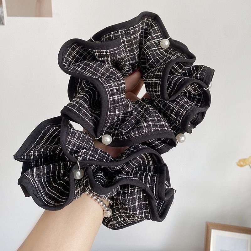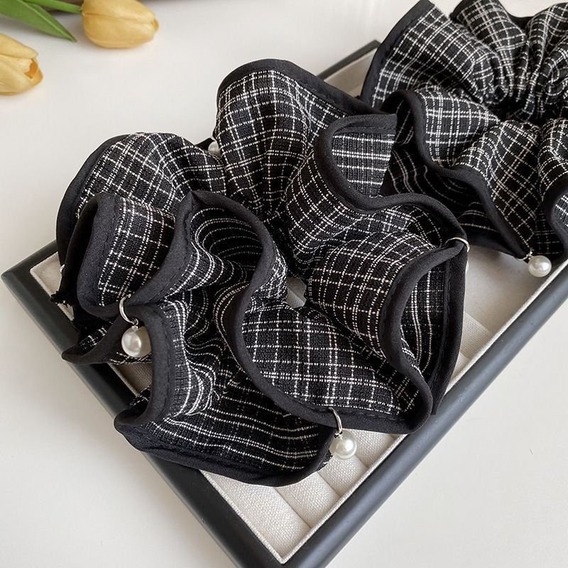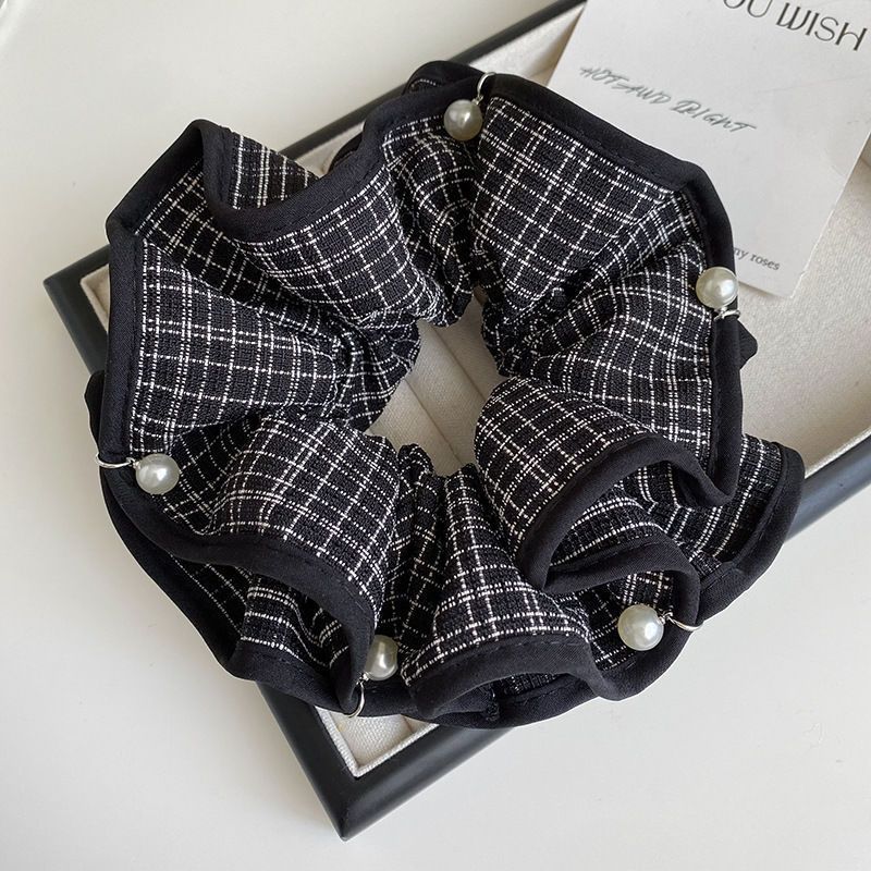 Product information:Color: Pearl black and white plaid hair tie Material: Fabric Style: Cute Design: High elasticity