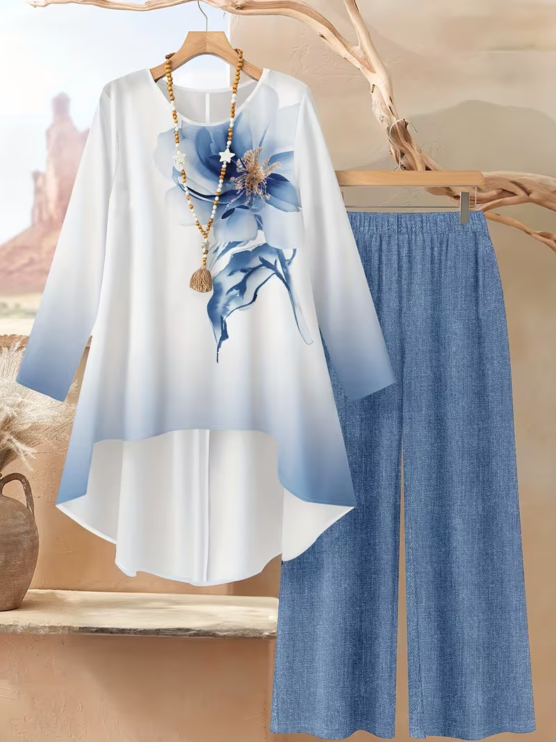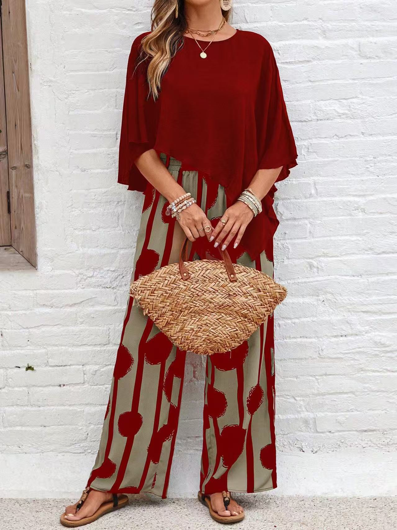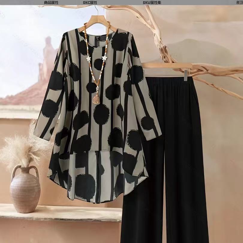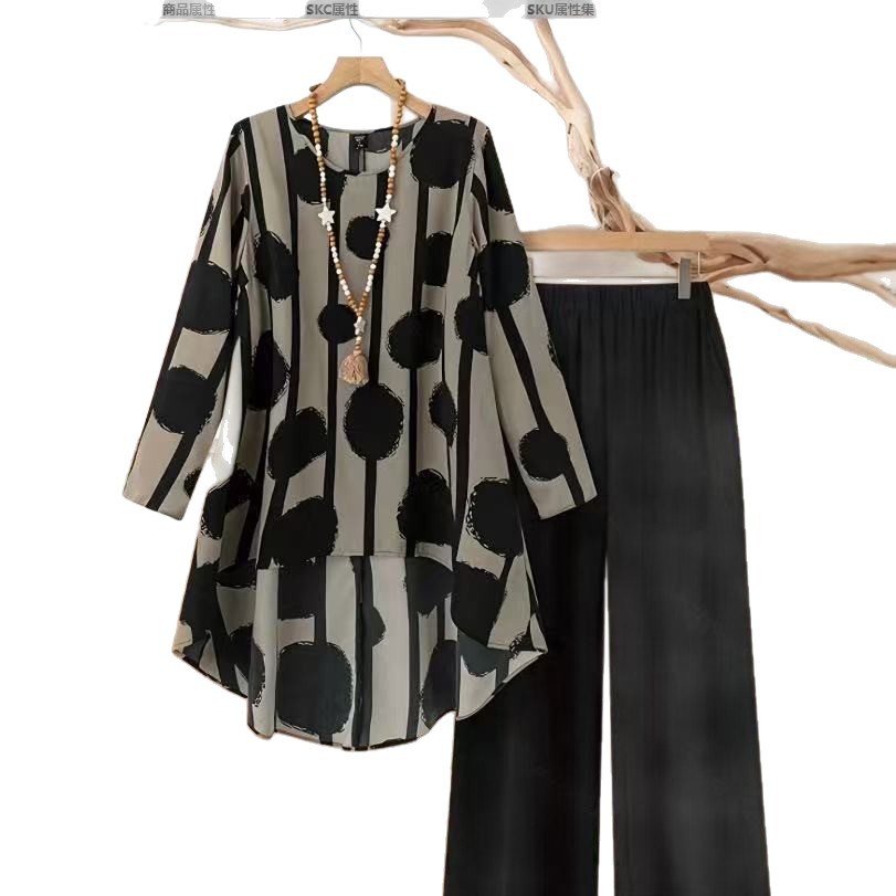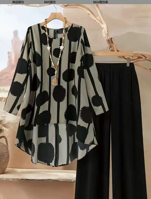 New Retro-print Loose-fitting Versatile Fashionable Casual Two-piece Set