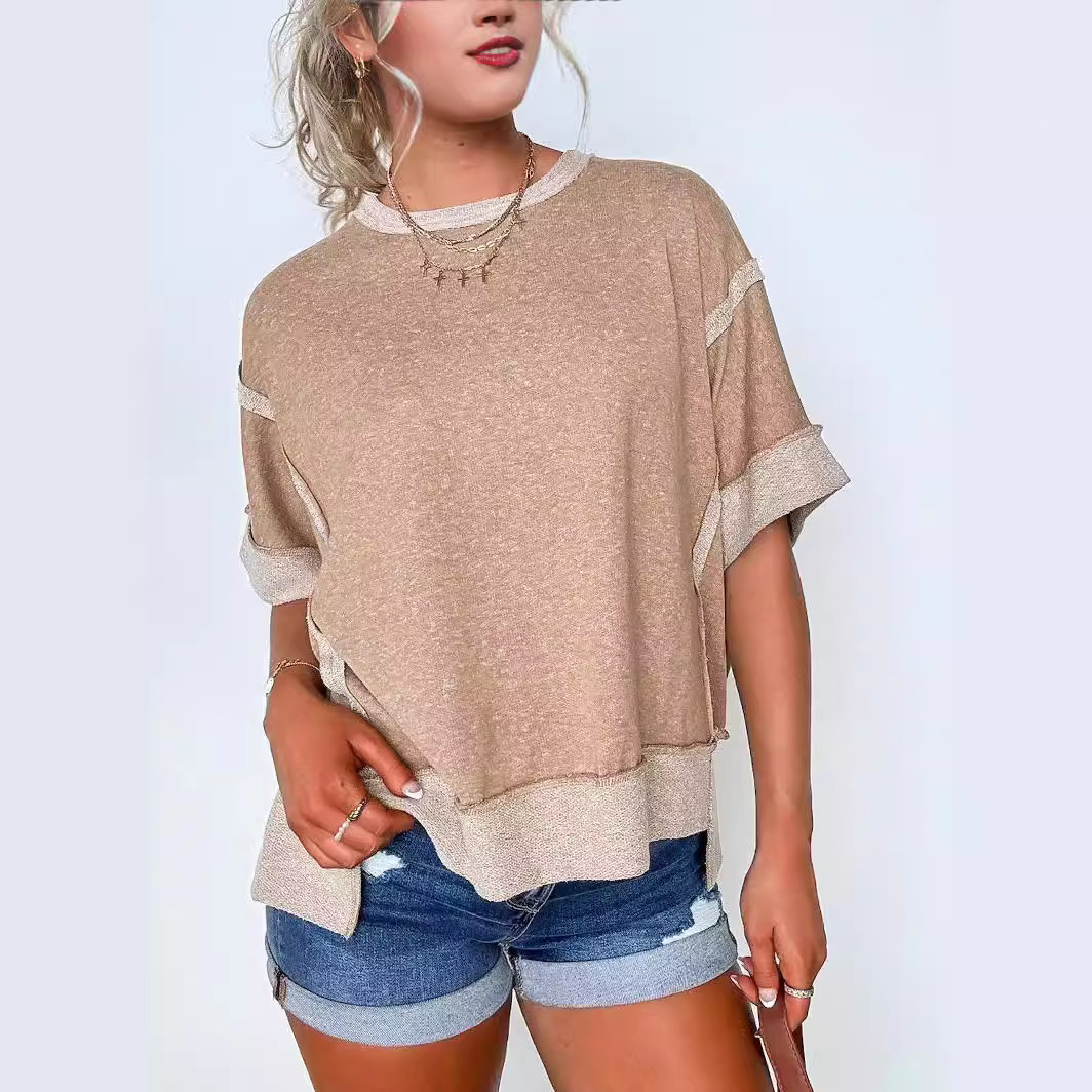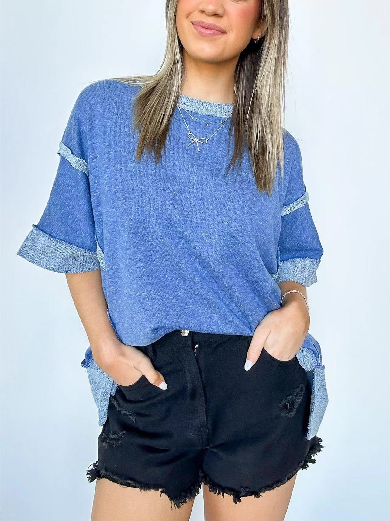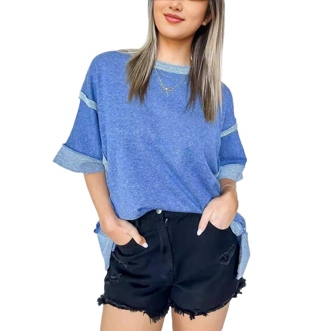 New Round Neck Loose Patchwork Sweater T-shirt