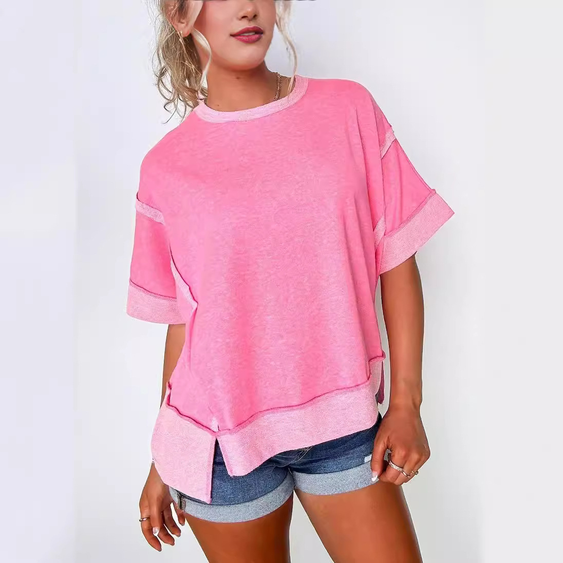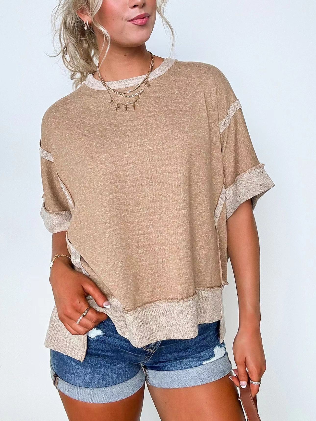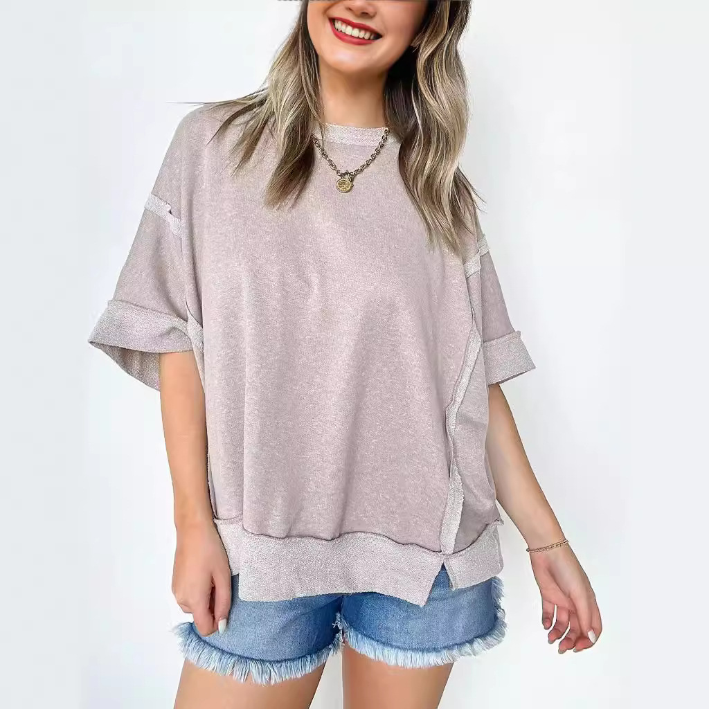 New Round Neck Loose Patchwork Sweater T-shirt