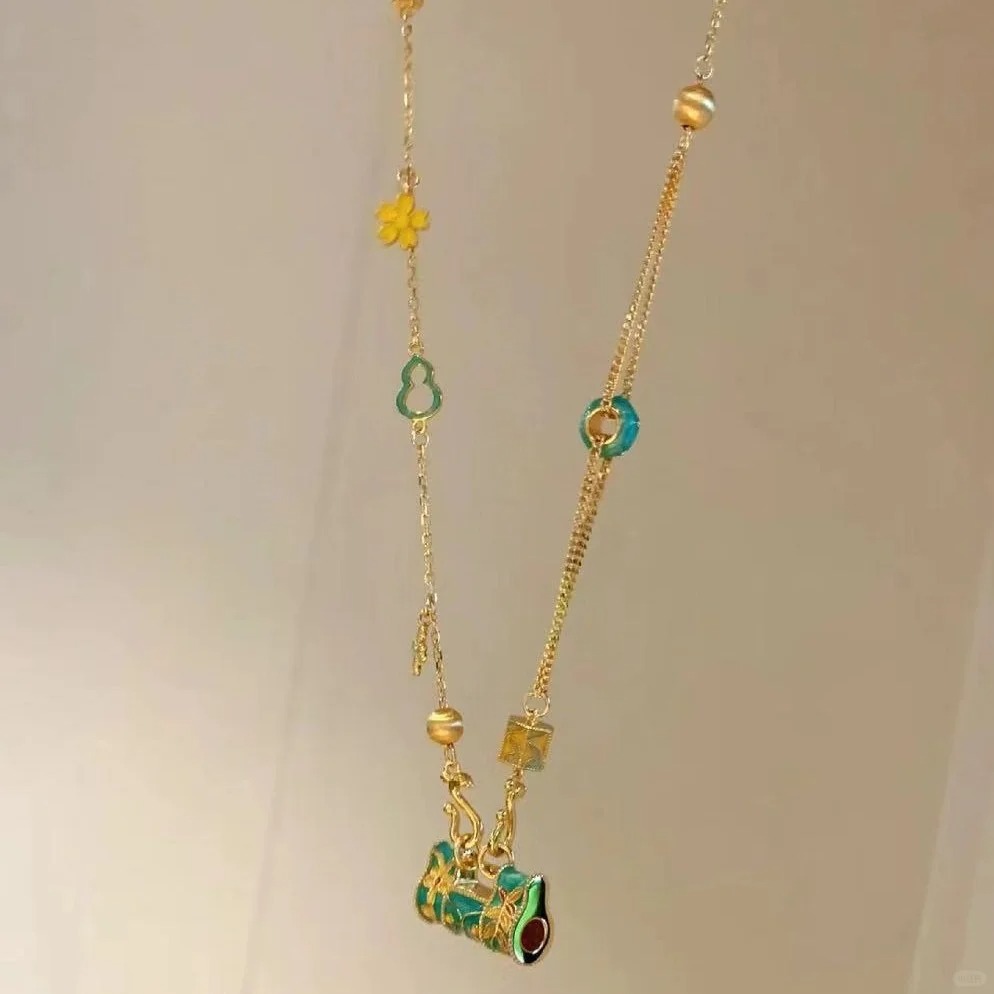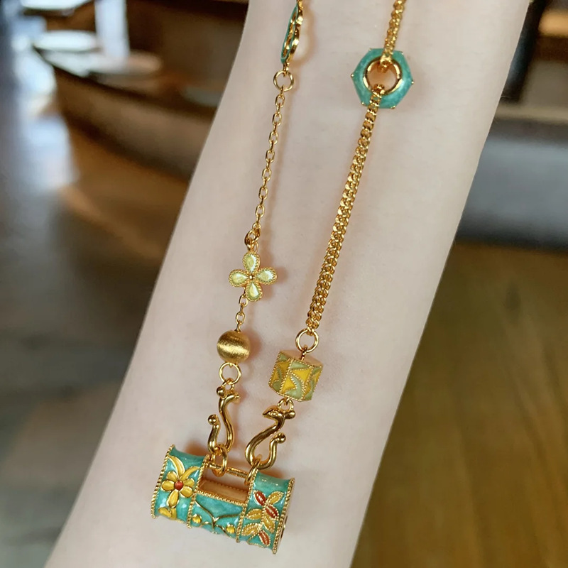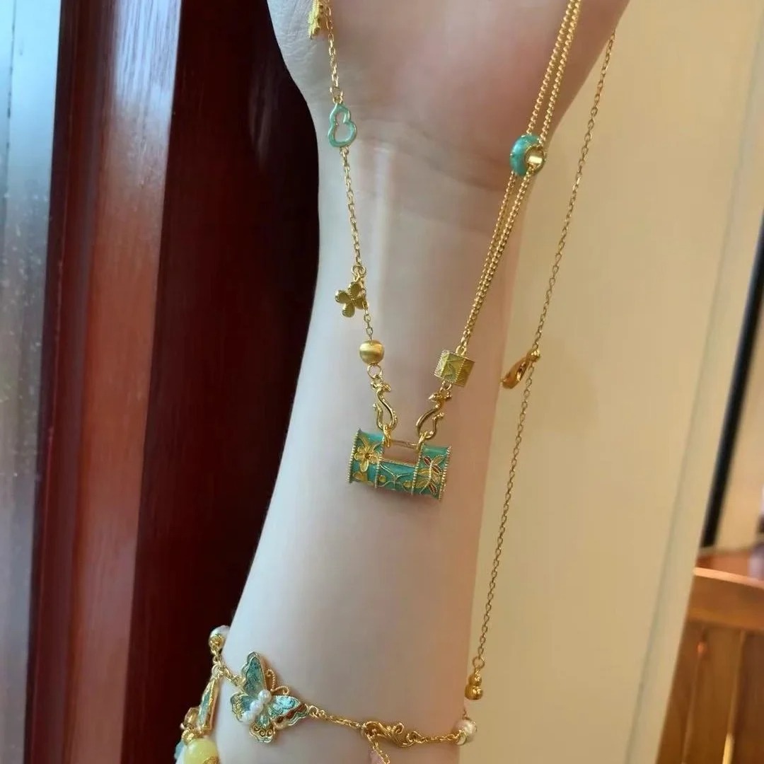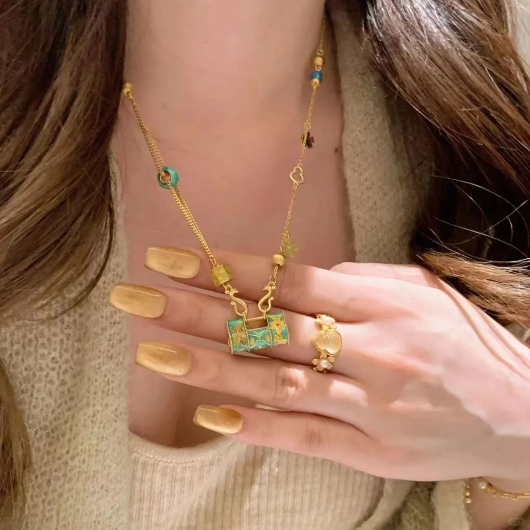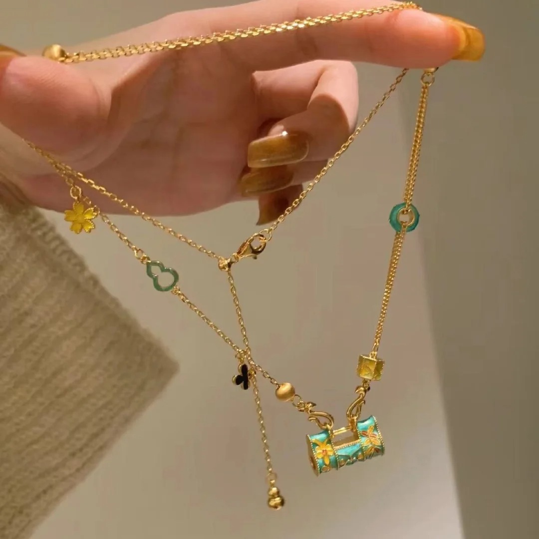 Color: D914 Chinese style enamel longevity lock necklace price