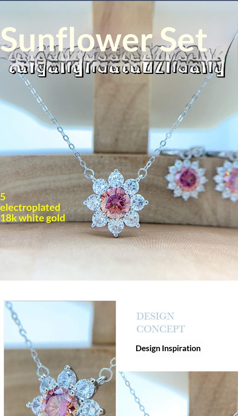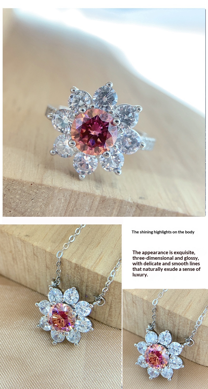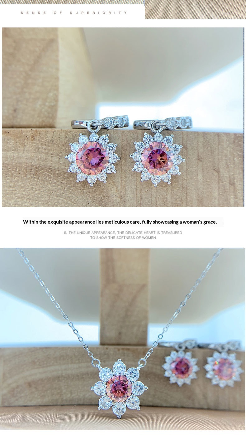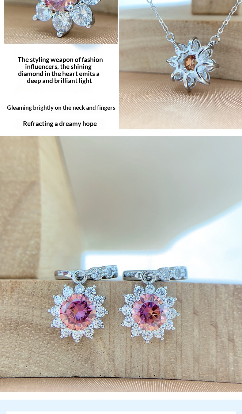 Colors: Iridescent Pink Moissanite Necklace, Iridescent Pink Moissanite Ring, Iridescent Pink Moissanite Earrings
