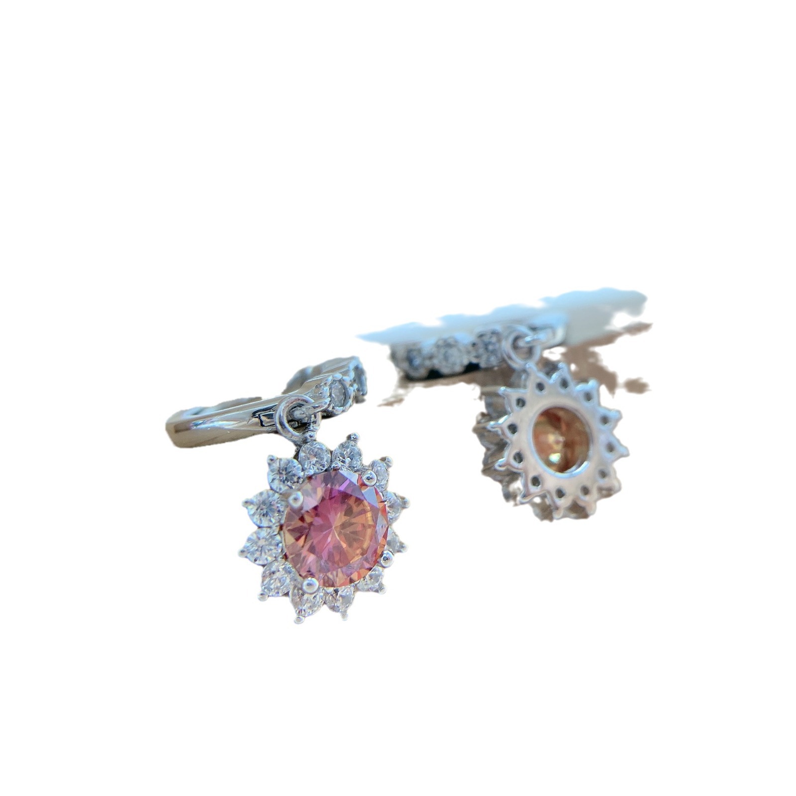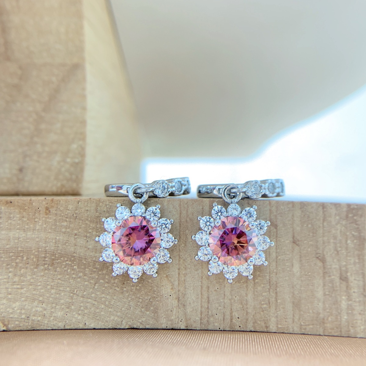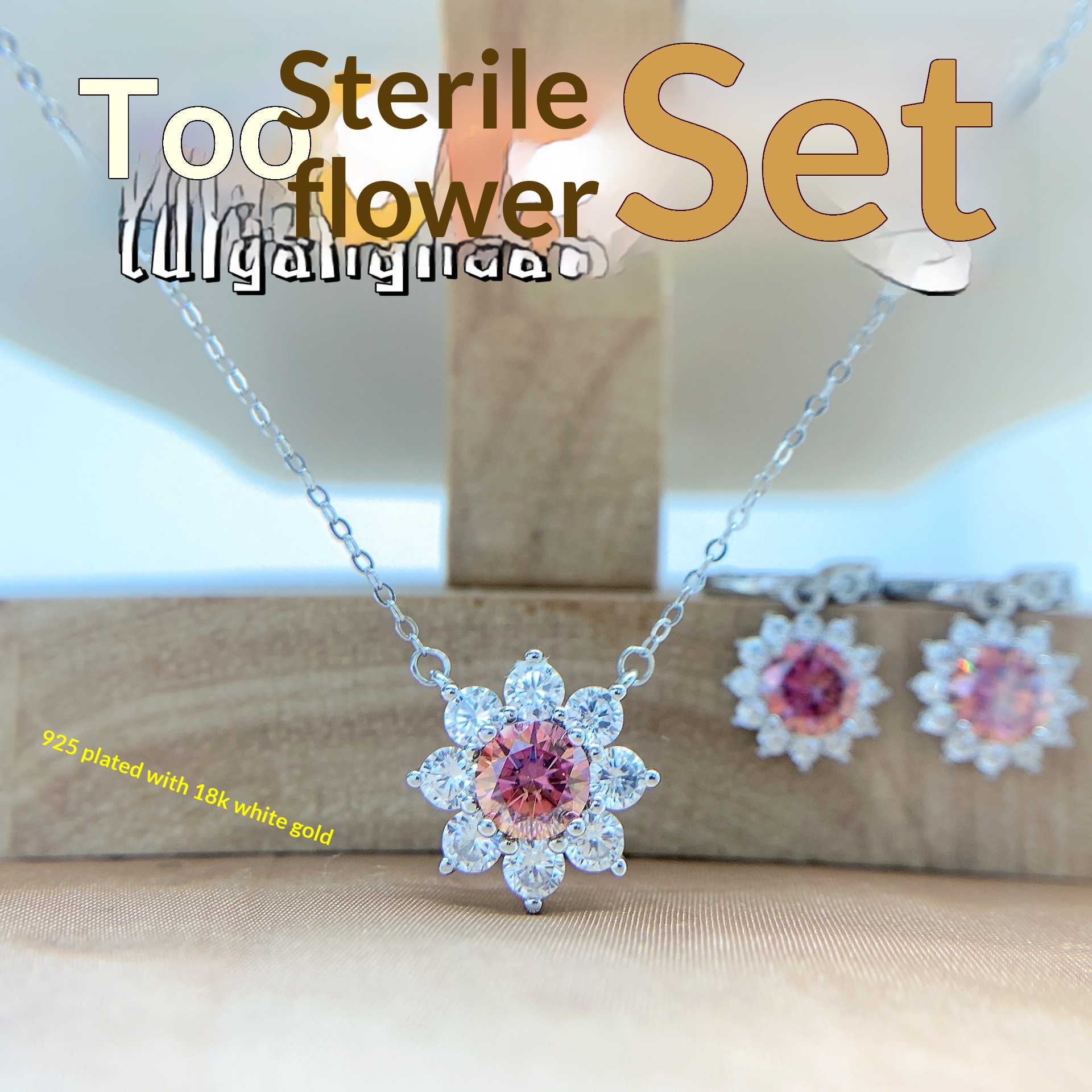 Colors: Iridescent Pink Moissanite Necklace, Iridescent Pink Moissanite Ring, Iridescent Pink Moissanite Earrings