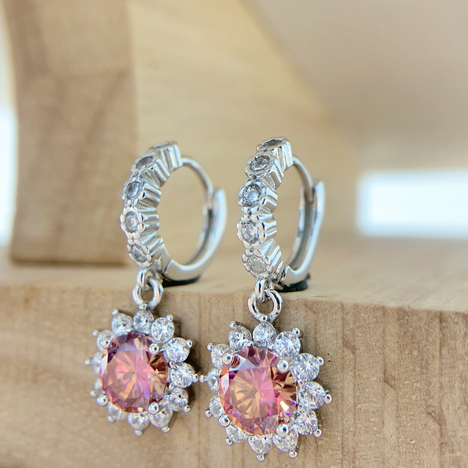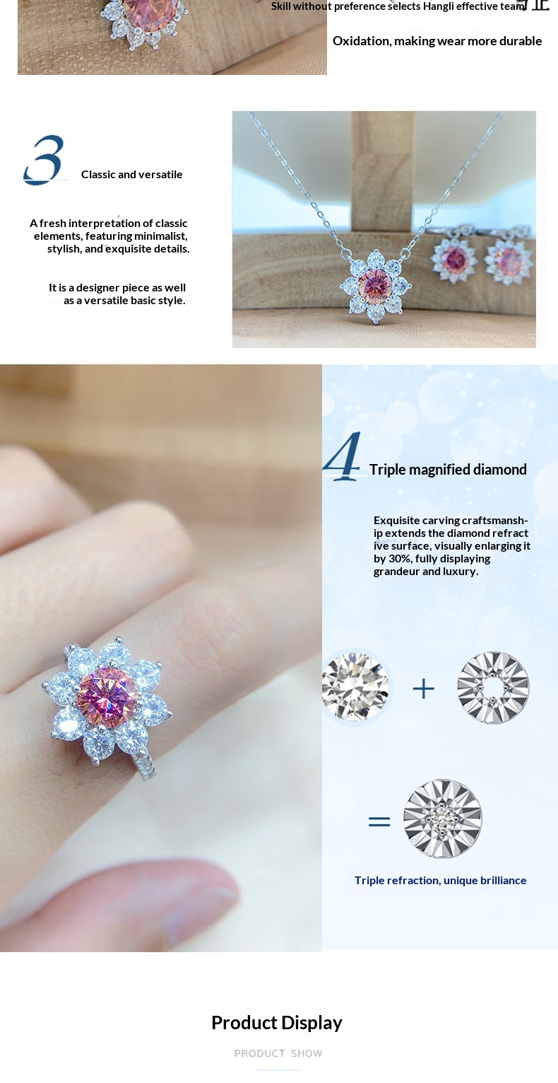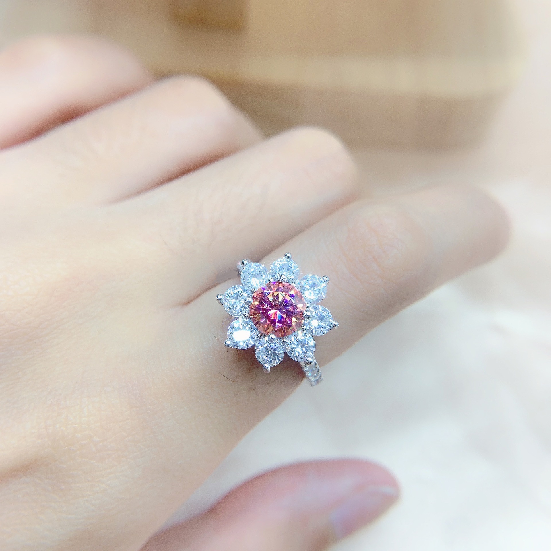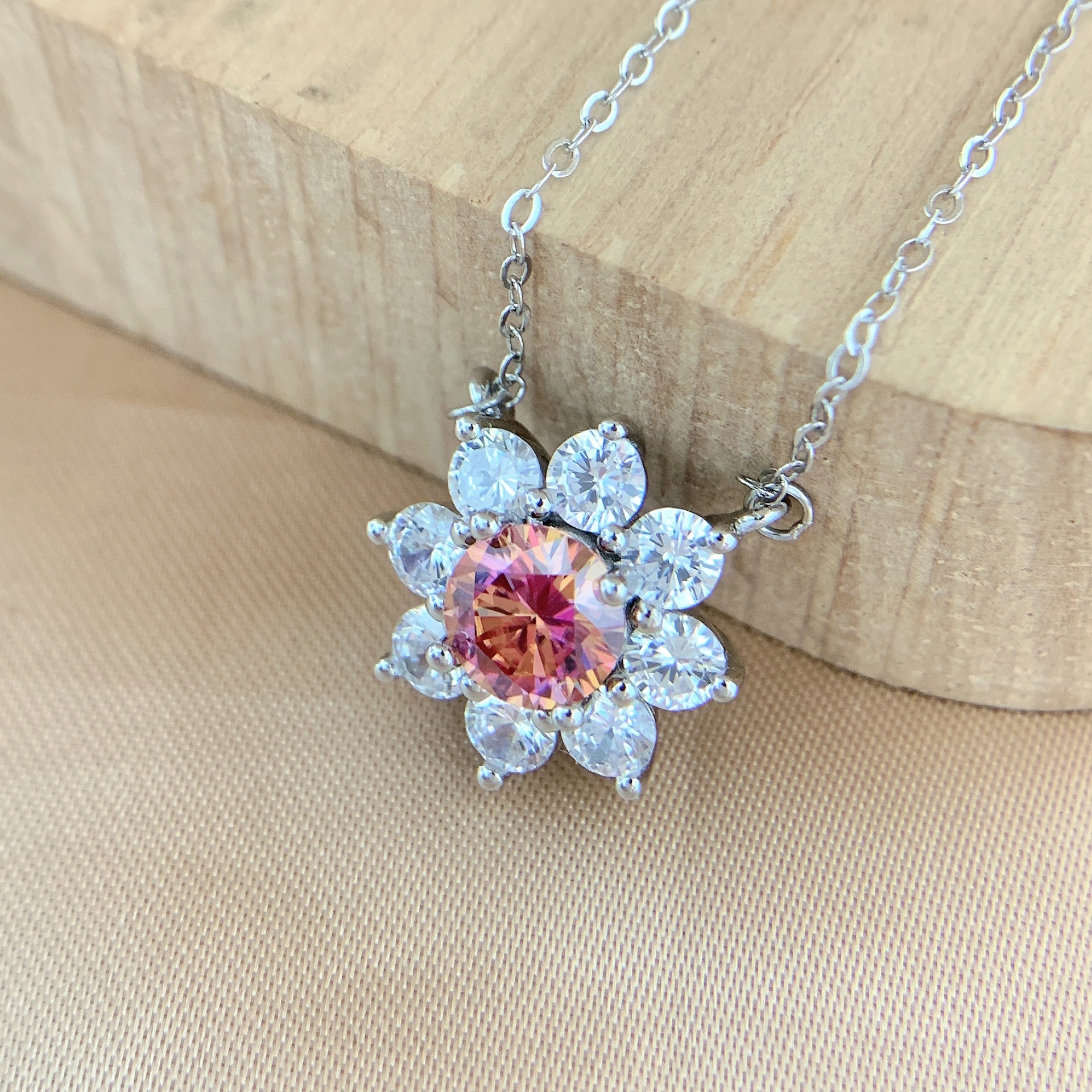 Colors: Iridescent Pink Moissanite Necklace, Iridescent Pink Moissanite Ring, Iridescent Pink Moissanite Earrings
