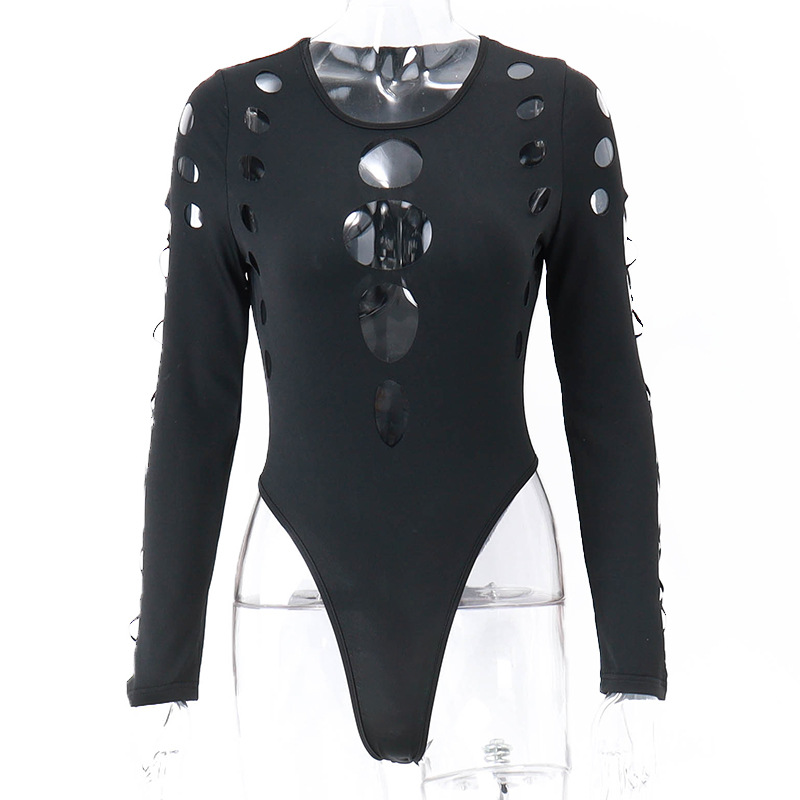 New Sexy Hot Girl Multi-hollow Round Neck Long Sleeve Jumpsuit