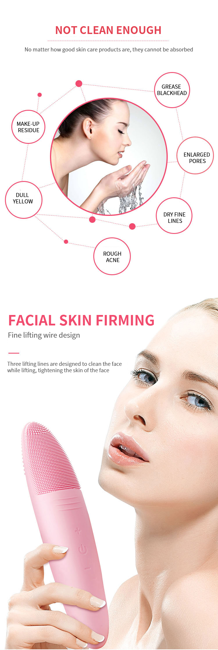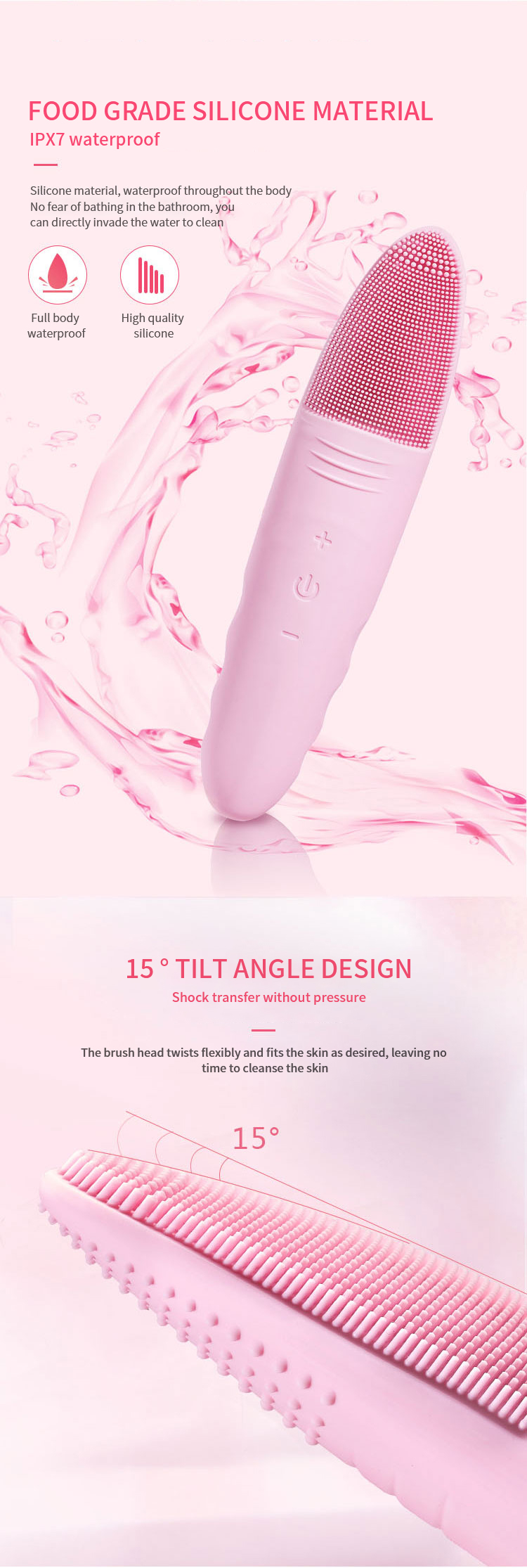 Product features: cleansing, massage, multi-position, waterproof, portable