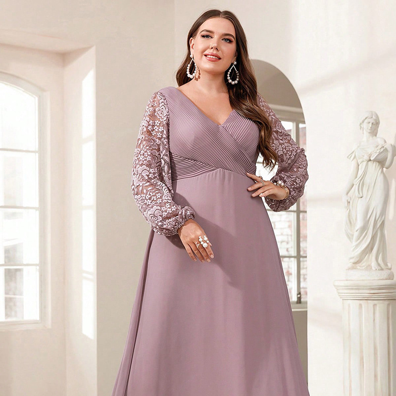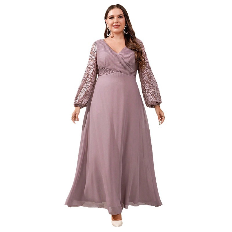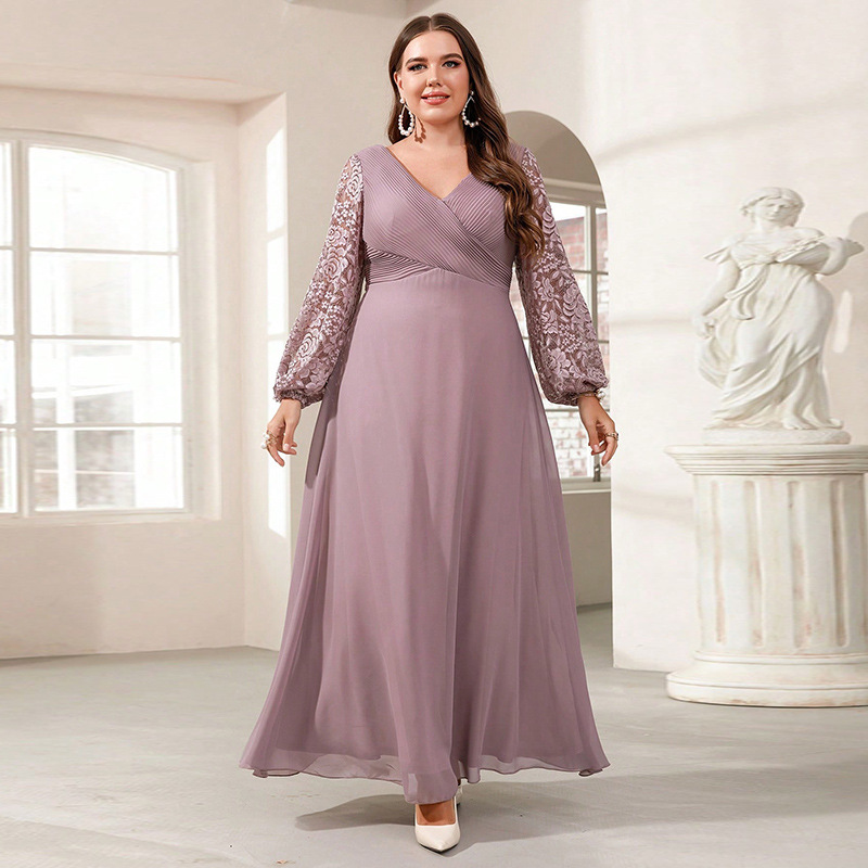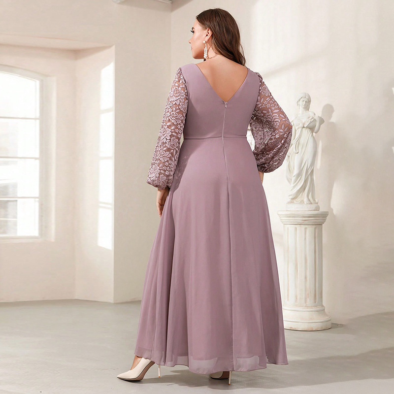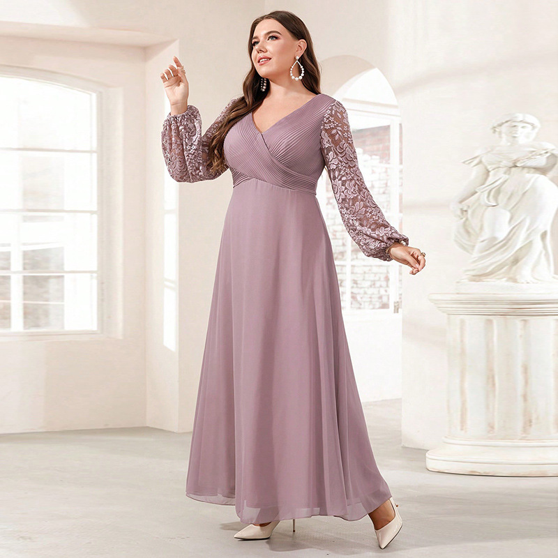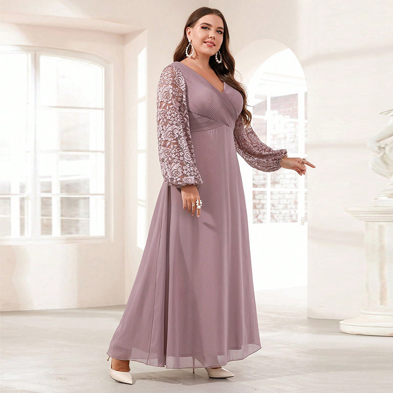 New Silk Satin V-neck Long-sleeve Dress