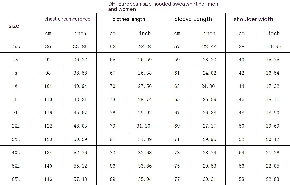 Size: 2XS,XS,S,M,L,XL,2XL,3XL,4XL,5XL,6XL