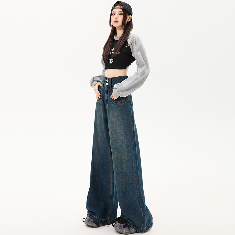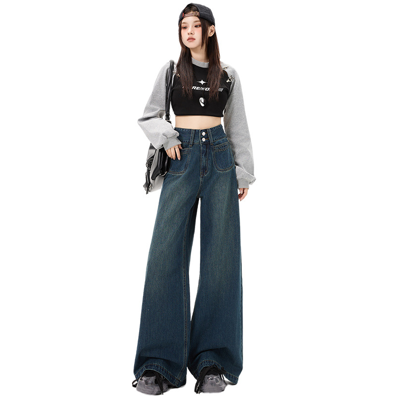 Color: retro blue trousers, retro blue lengthened