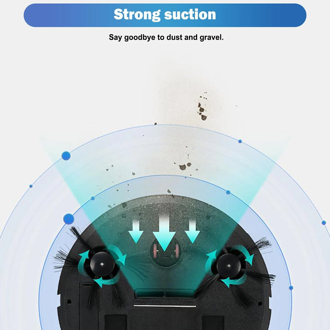 *POWERFUL SUCTION POWER: Robot vacuum cleaner is mainly for household fine dust, pet hair, hair. Powerful suction power, cleaning more in place.