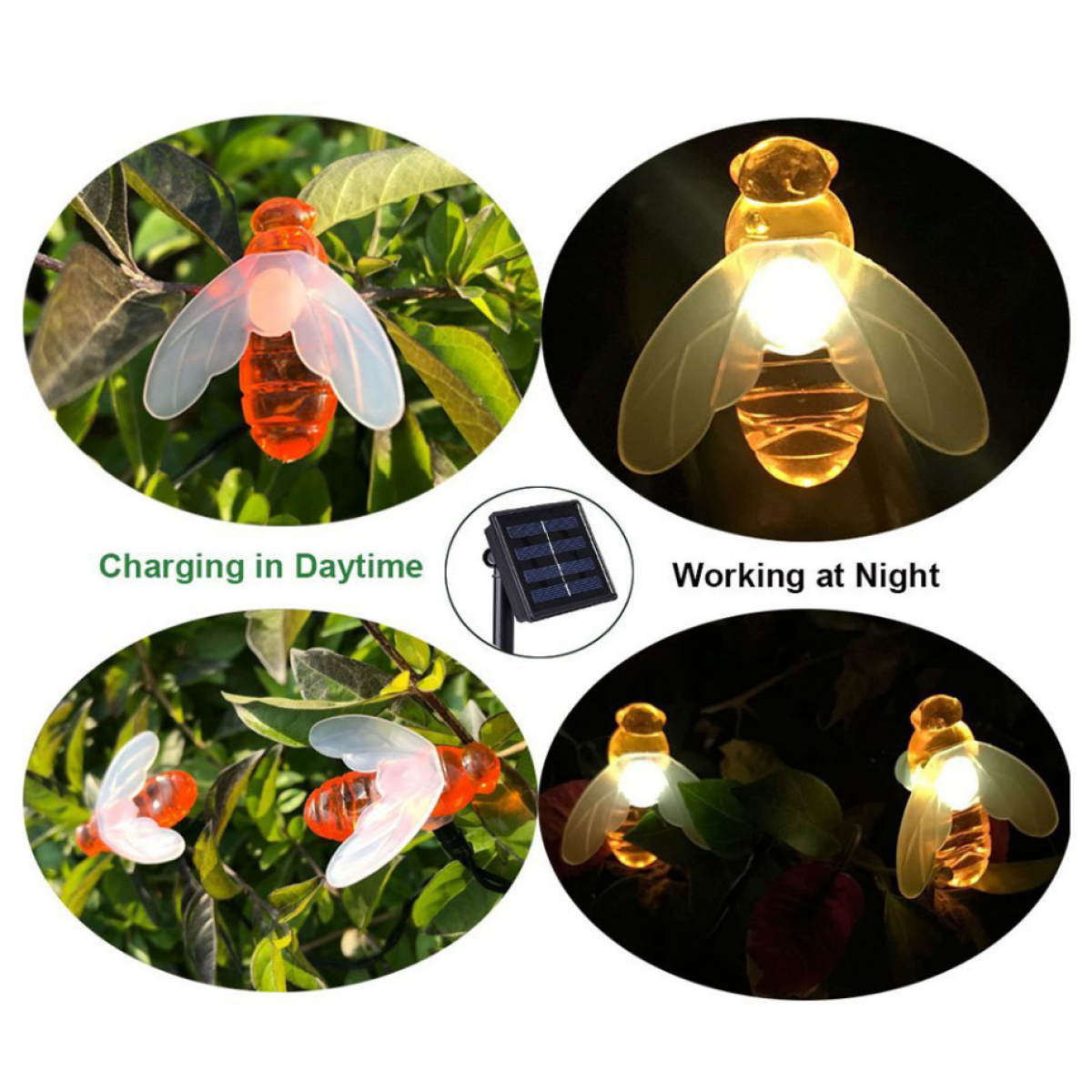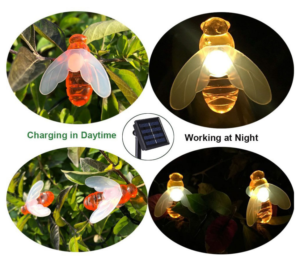 New solar energy bee lamp string waterproof outdoor lamp strip origin goods festival decorative lantern insect lamp belt
