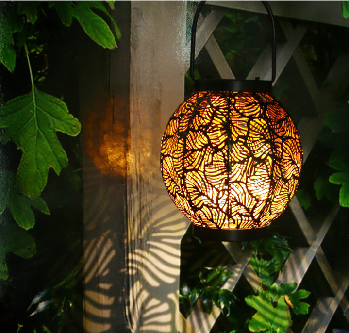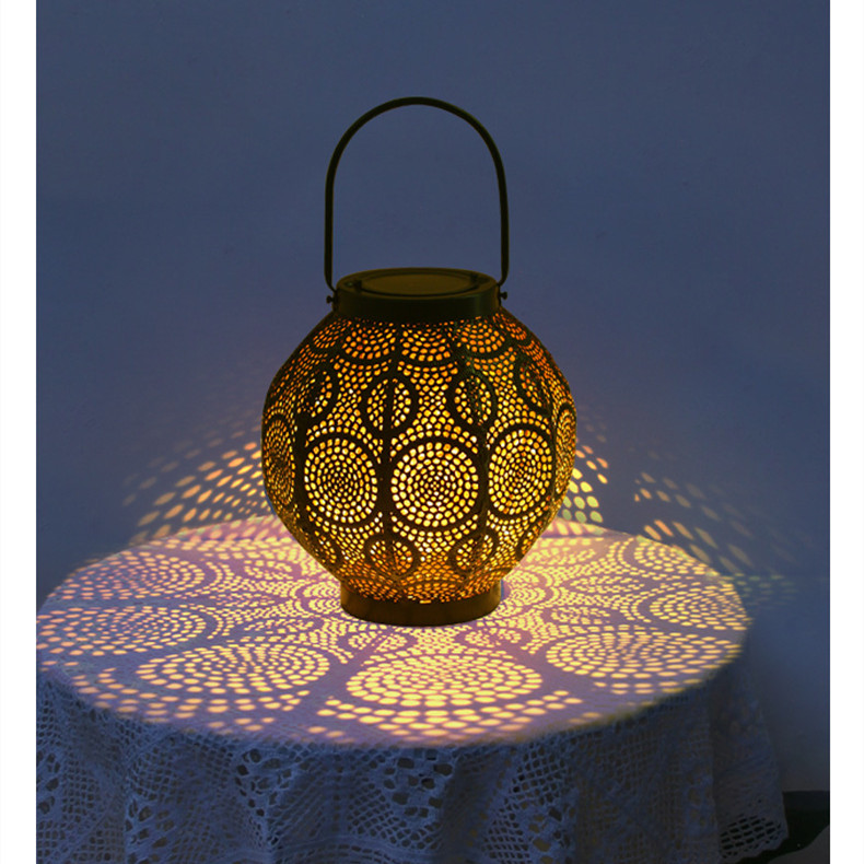 New Solar Outdoor Courtyard Hollow Decorative Iron Portable Lamp