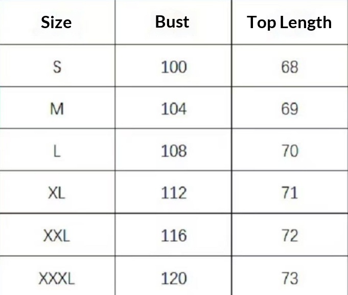 Sizes: S, M, L, XL, XXL, XXXL
